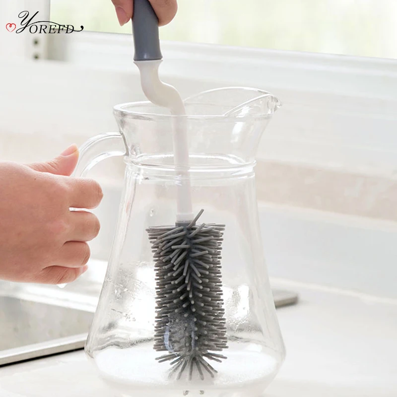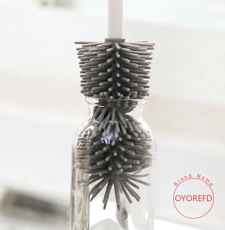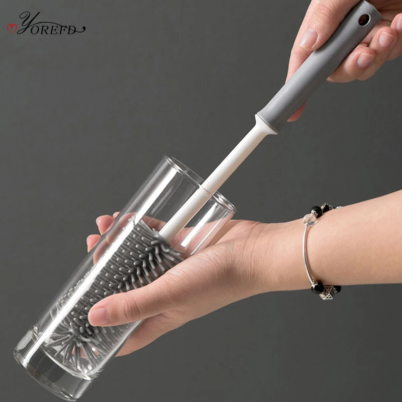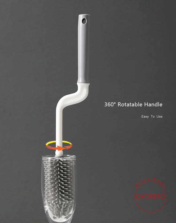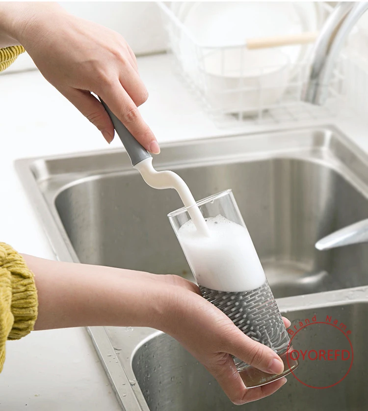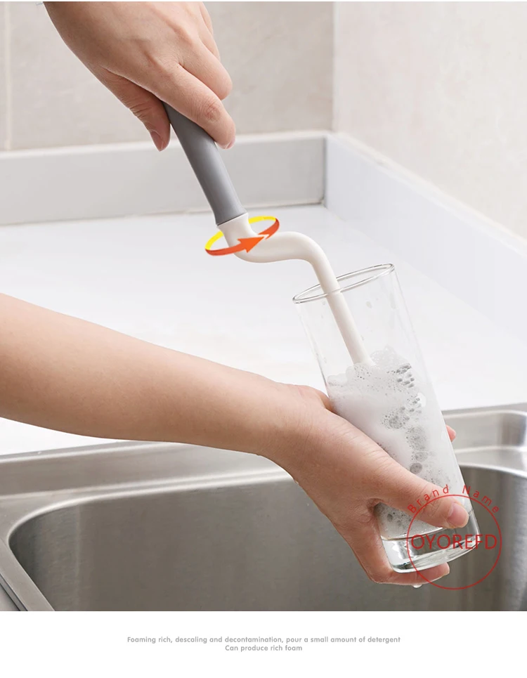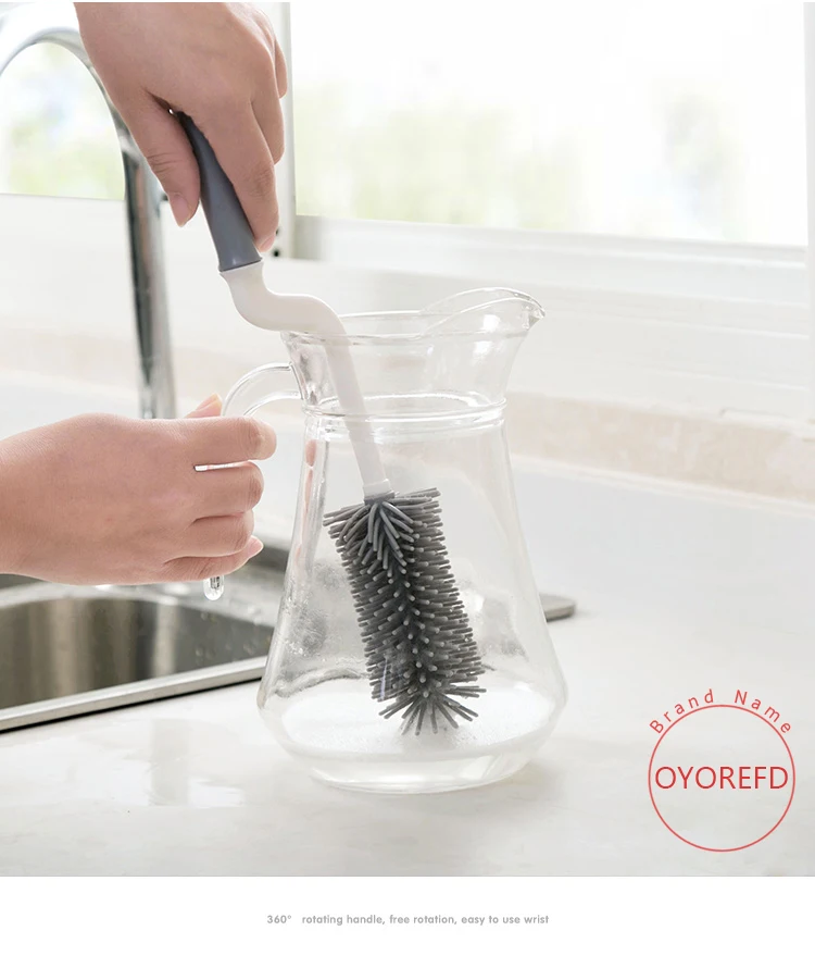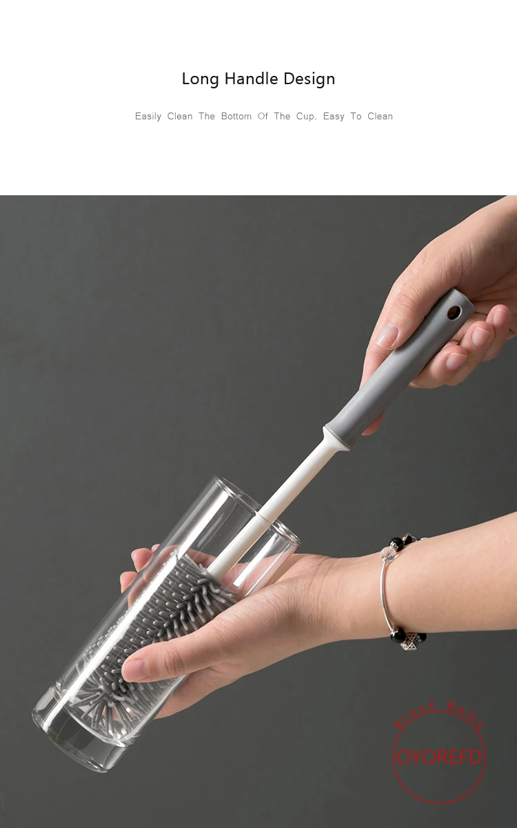 Вращающийся силиконовый очиститель для бутылок OYOREFD с длинной ручкой, стеклянный стакан, бутылка для молока, чайник, скребок для удаления загрязнений, инструмент для очистки бутылок