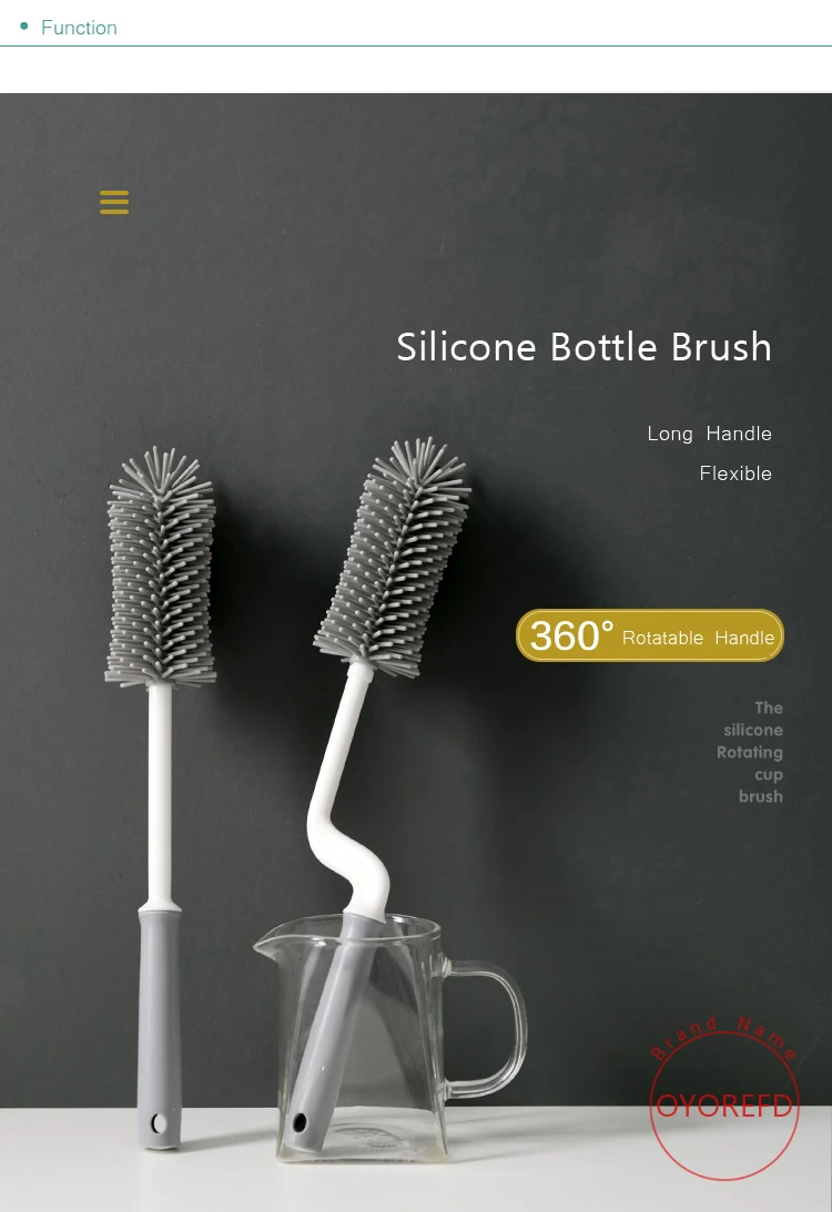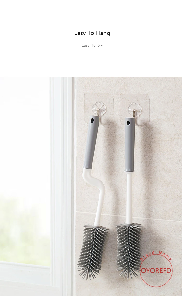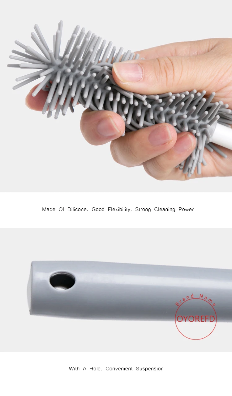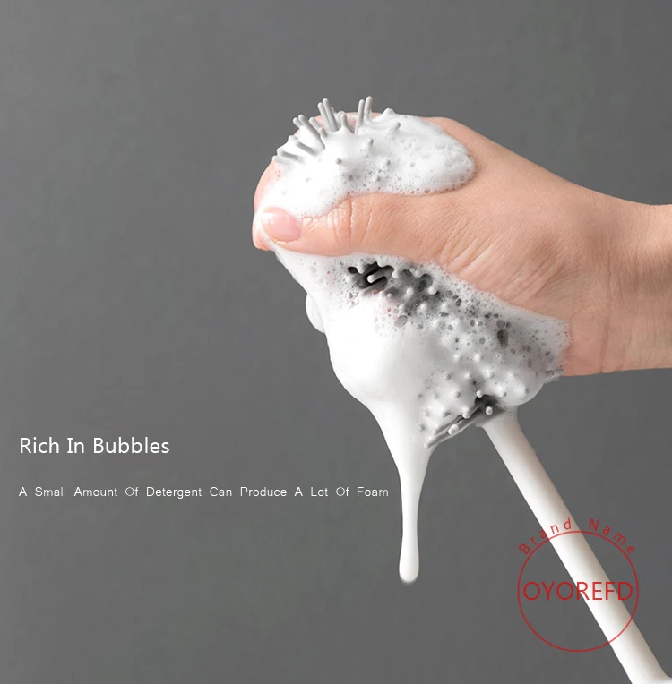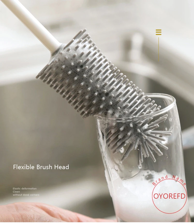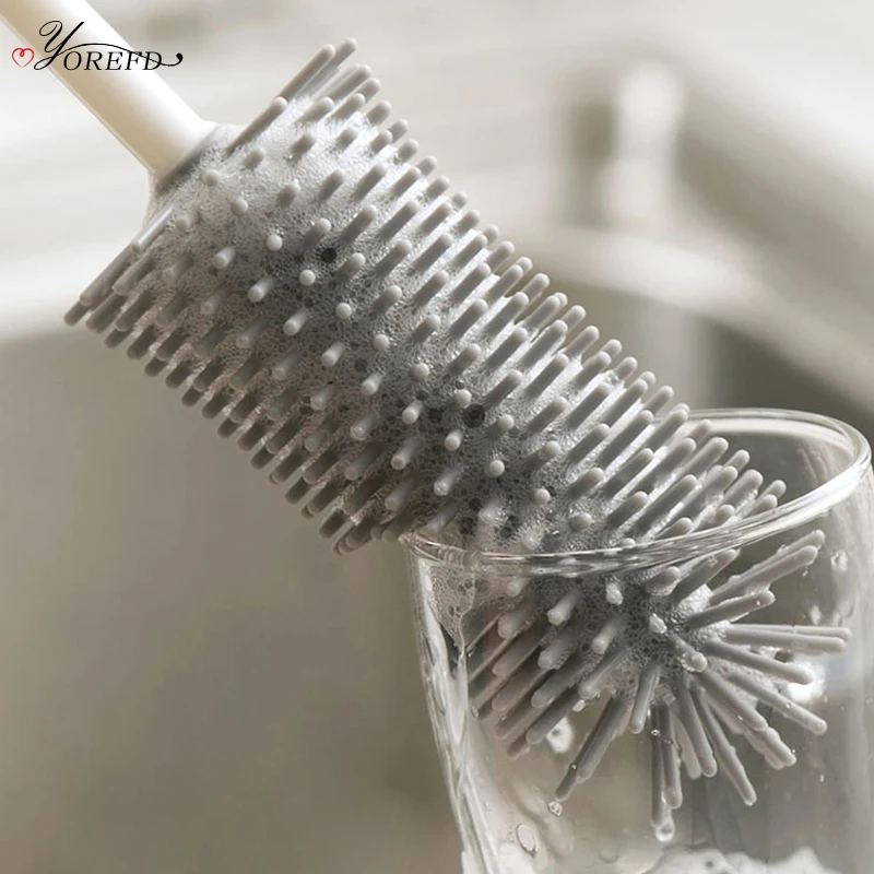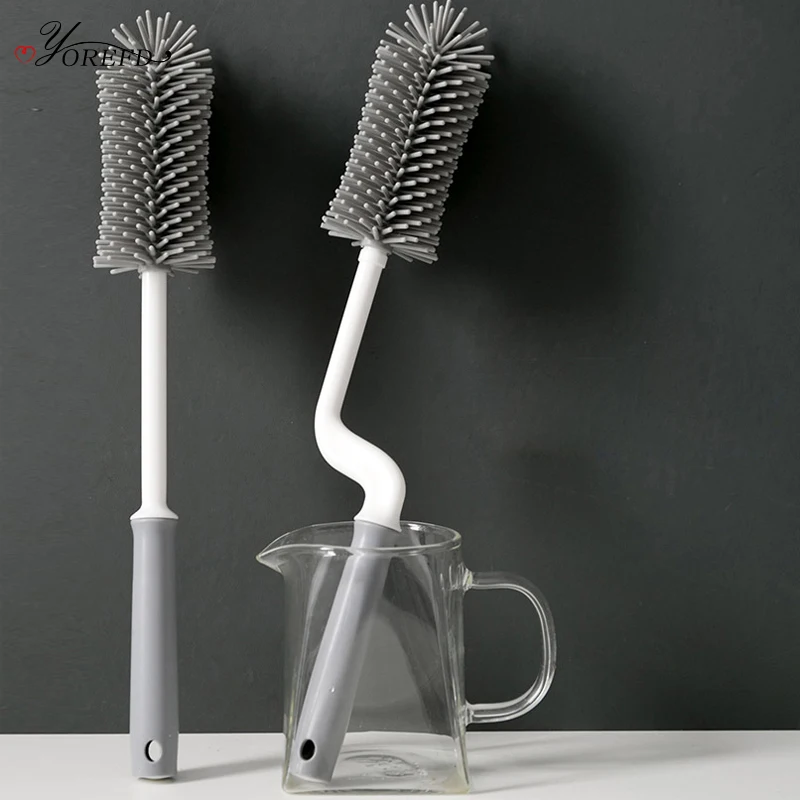 Вращающийся силиконовый очиститель для бутылок OYOREFD с длинной ручкой, стеклянный стакан, бутылка для молока, чайник, скребок для удаления загрязнений, инструмент для очистки бутылок