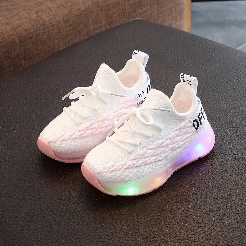 Детские светящиеся кроссовки, Повседневная дышащая нескользящая обувь для мальчиков и девочек, светодиодная подсветка, размеры 21-30