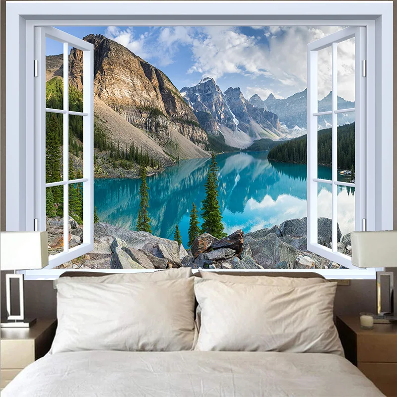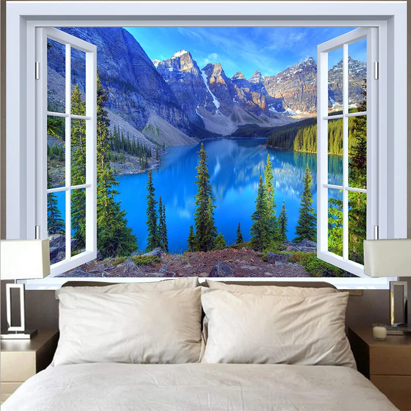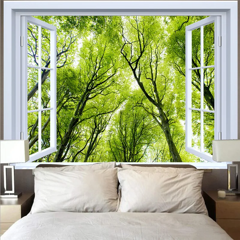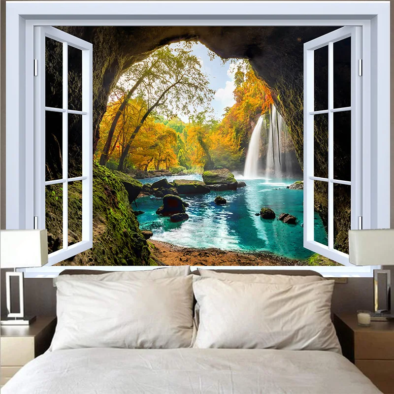 Гобелен с Луной, натуральный гобелен, настенный гобелен в стиле хиппи, с изображением леса, подсолнуха, звездных звезд, окно в небо гобеленов, Декор для дома