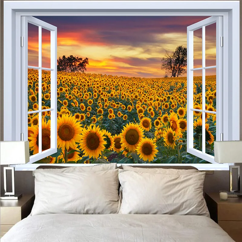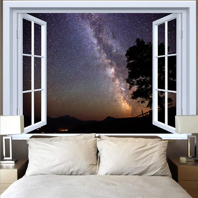 Натуральный пляж, лес, Луна и гобелен, расшитый звездами, настенная ткань, хиппи, настенный гобелен, Подсолнух, звездное окно в небо, гобелены