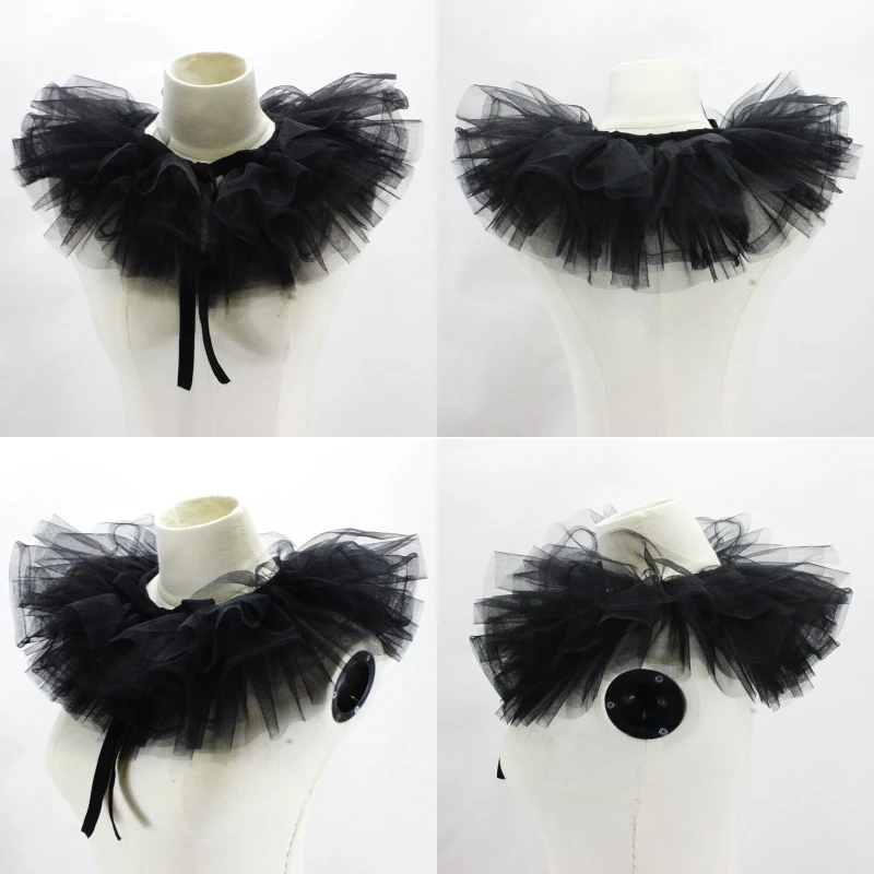Женский Викторианский гофрированный сетчатый накладной воротник шаль Ретро многослойный тюль съемный шейный декоративный чокер клоуна Косплей