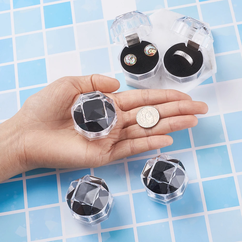 20 шт прозрачные пластиковые коробки для колец, Подарочная коробка для ювелирных изделий, витрины для сережек, органайзер для хранения, держатель 3.8x3.8x3.8x3.8cm