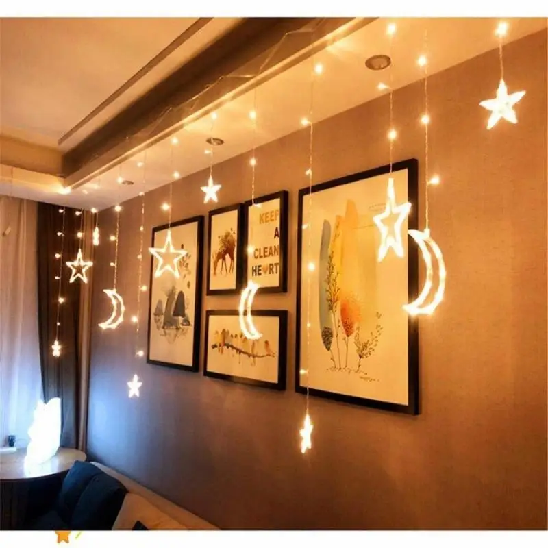 Светодиодная занавессветильник 3,5 м2,5 м, лампа в виде луны и звезд, украшение для Рождества, свадьбы, вечеринки, светильник освещение для праздника, сада, Хэллоуина