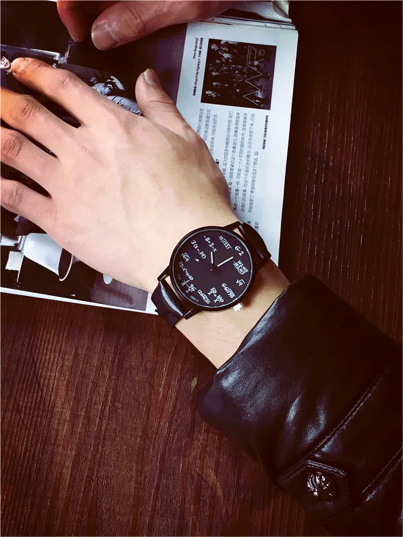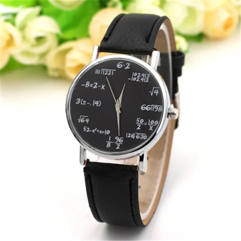 Женские кварцевые часы с кожаным ремешком, повседневные часы с большим циферблатом и математическим символом, 2018