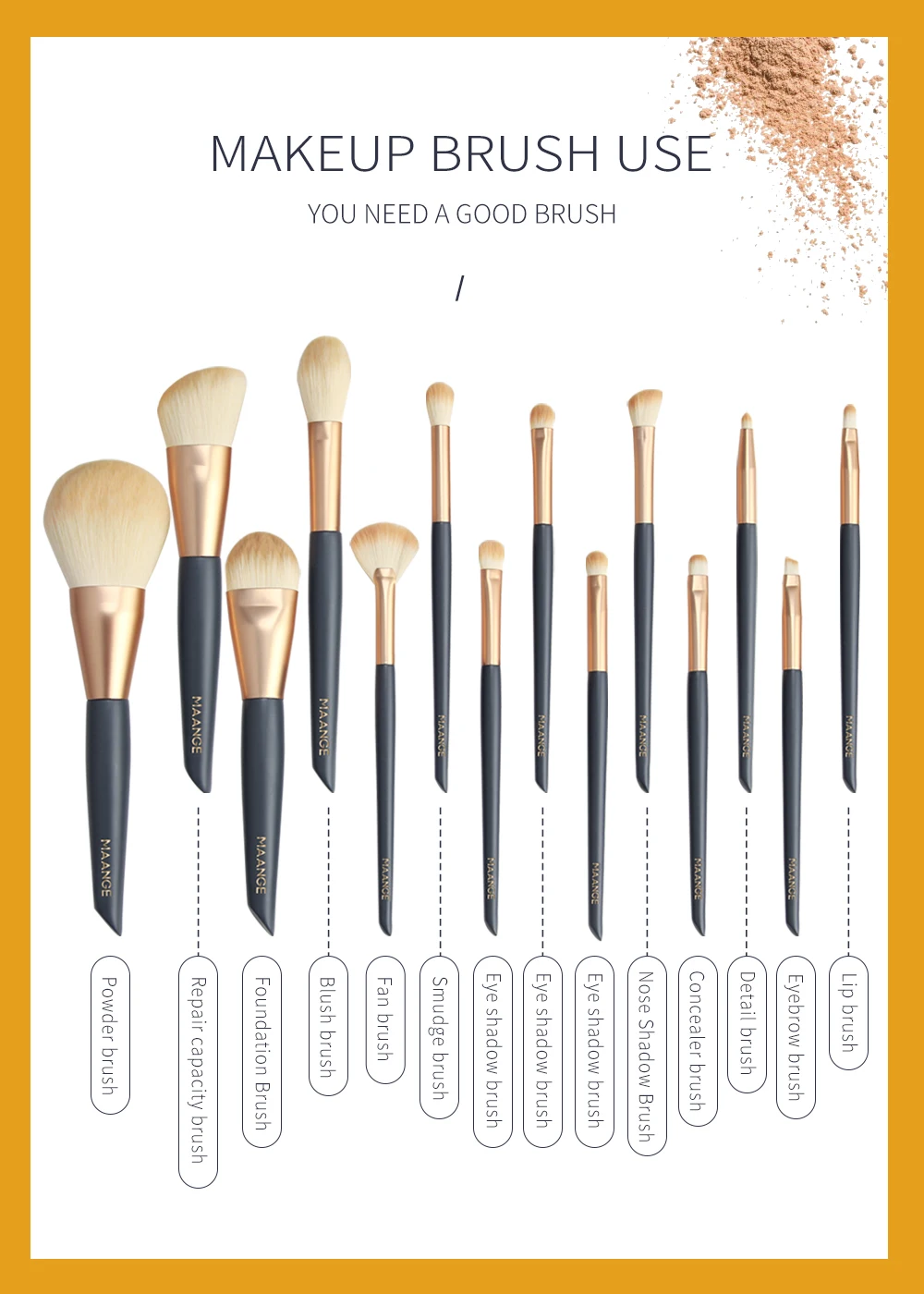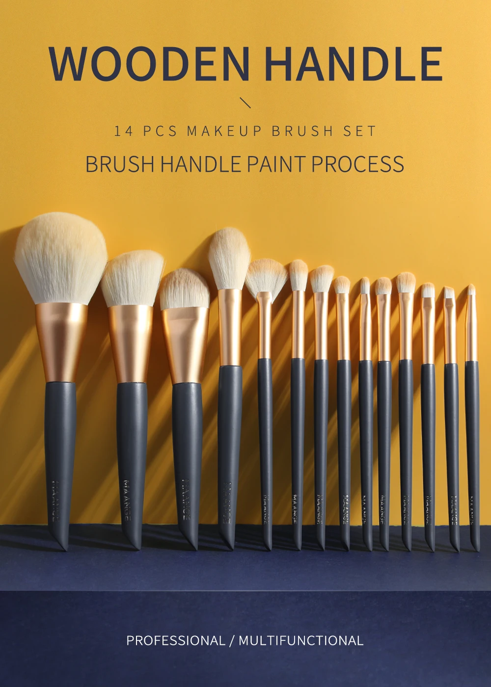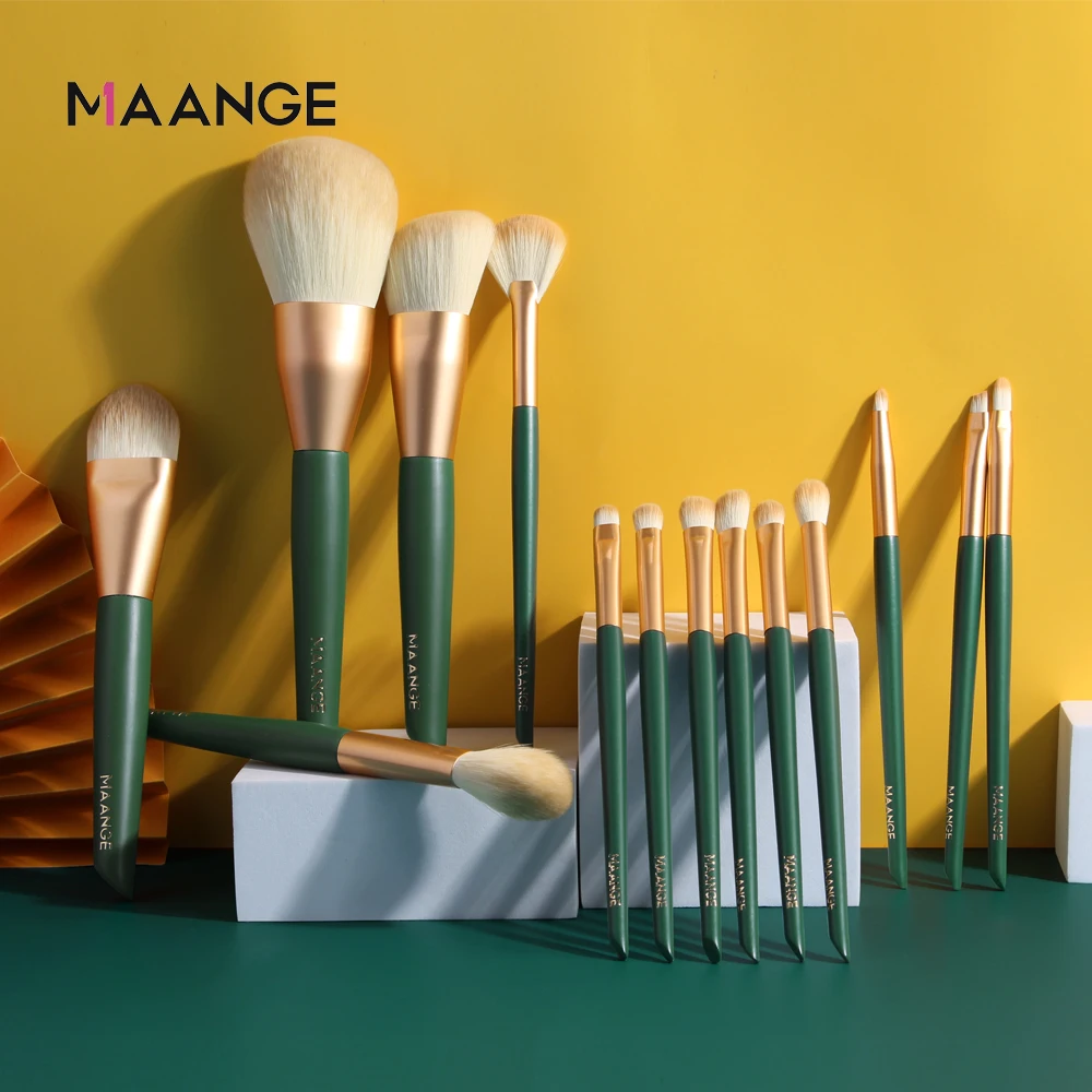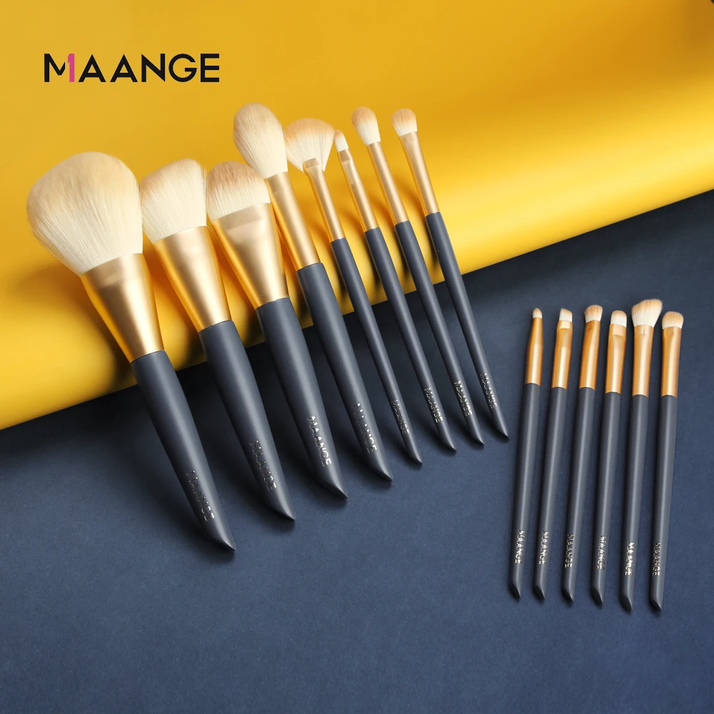 Набор кистей для макияжа MAANGE Pro, 14 шт., для пудры, основы, румян, теней, губ, деревянный набор косметических кистей для макияжа