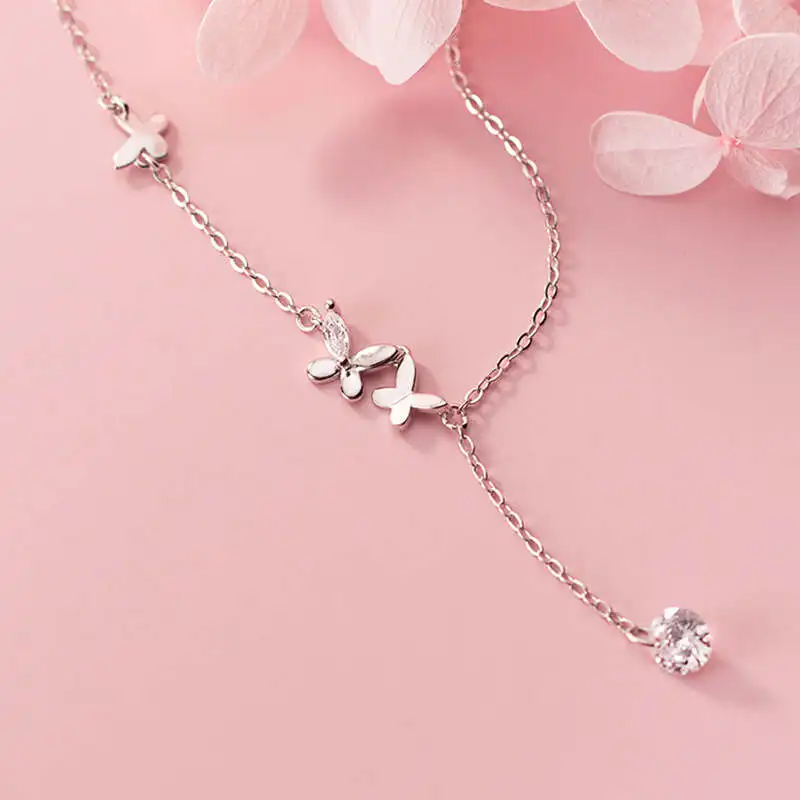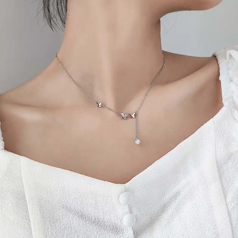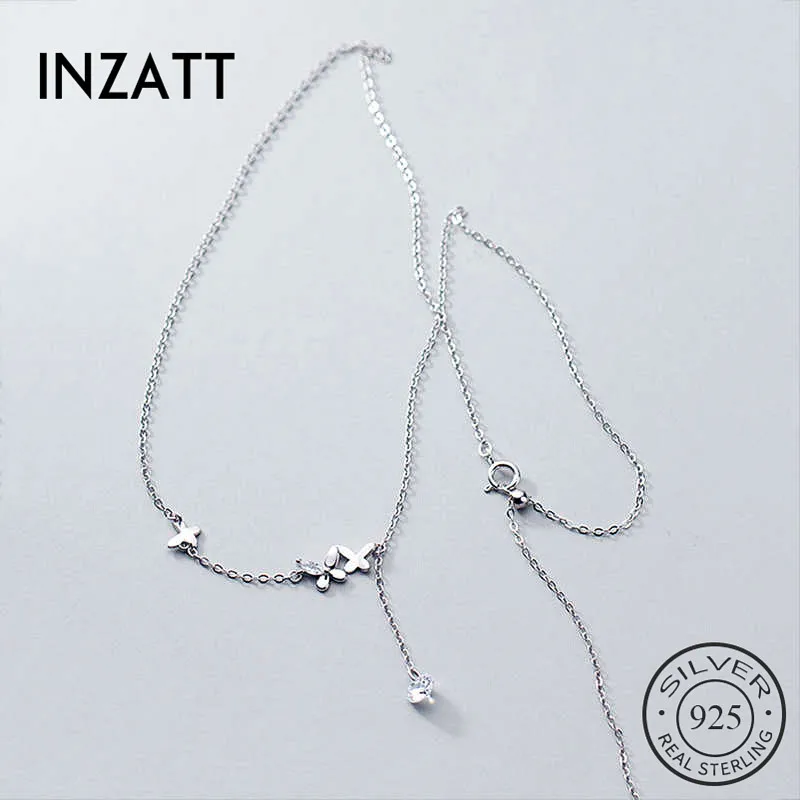 INZATT, Настоящее серебро 925 пробы, циркон, Бабочка, колье, ожерелье для женщин, вечерние ювелирные украшения, Богемные аксессуары, подарок