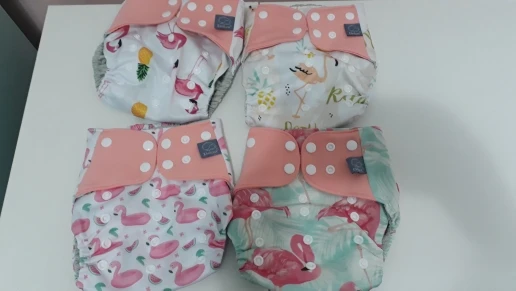 Adorei o conjunto. A qualidade das fraldas é muito boa. Estampas bonitas, acabamento interno em dry fit cinza. A qualidade dos absorventes é superior aos que já tinha comprado, são maiores e mais grossos. O saco impermeável é lindo, estampa de boa qualidade, zíper funcionando. Ainda não usei os itens, mas a primeira impressão é positiva.