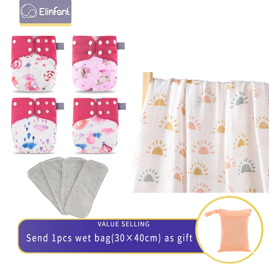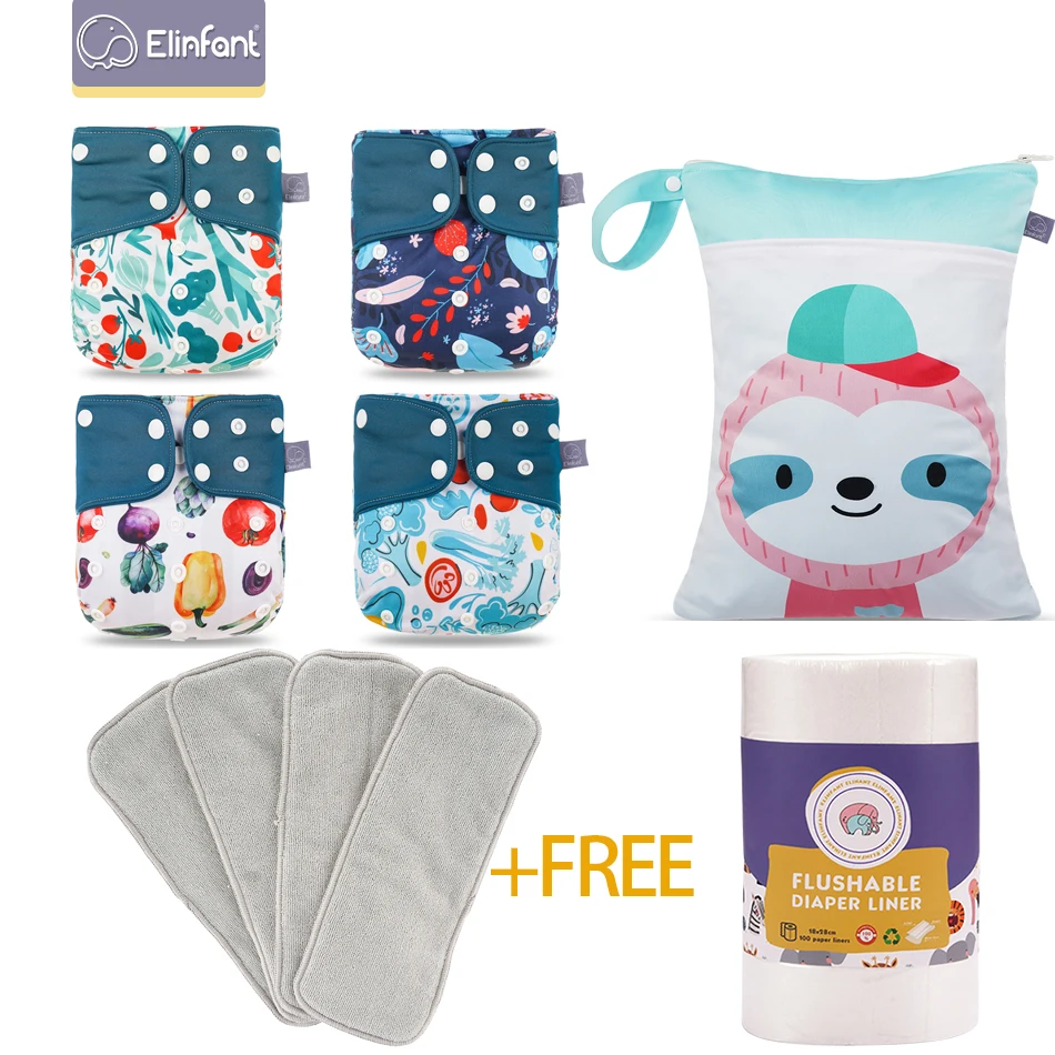 Новый набор экологически чистых влажных сумок Elinfant с бесплатной бамбуковой подкладкой, новинка, 4 шт.компл. Моющиеся Многоразовые Тканевые Экологичные подгузники с серой сеткой