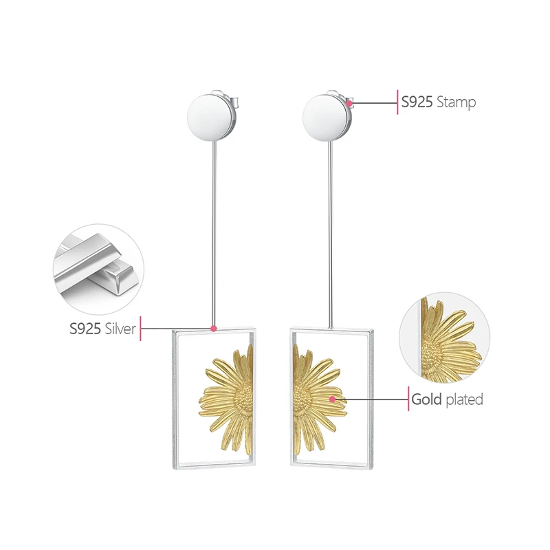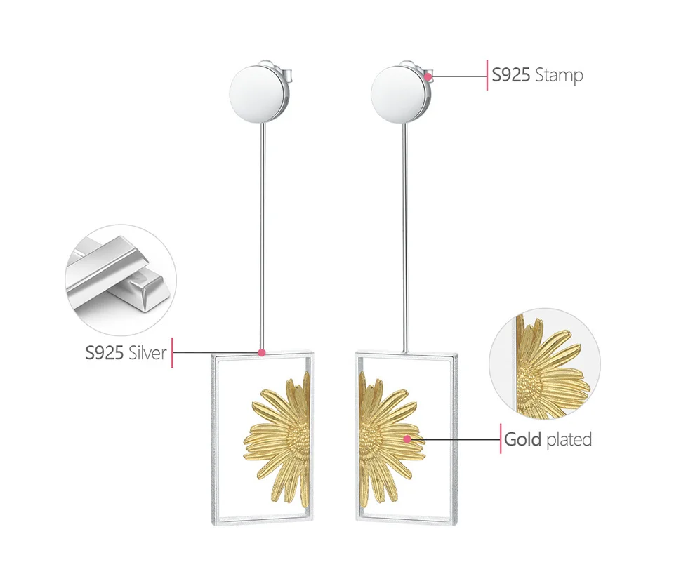 Это очень милые серьги, но они очень тонкие! Столб, который идет в ухо и столб, который бежит от цветка до уха, настолько тонкий, что они сгибаются во время нормального ношения.