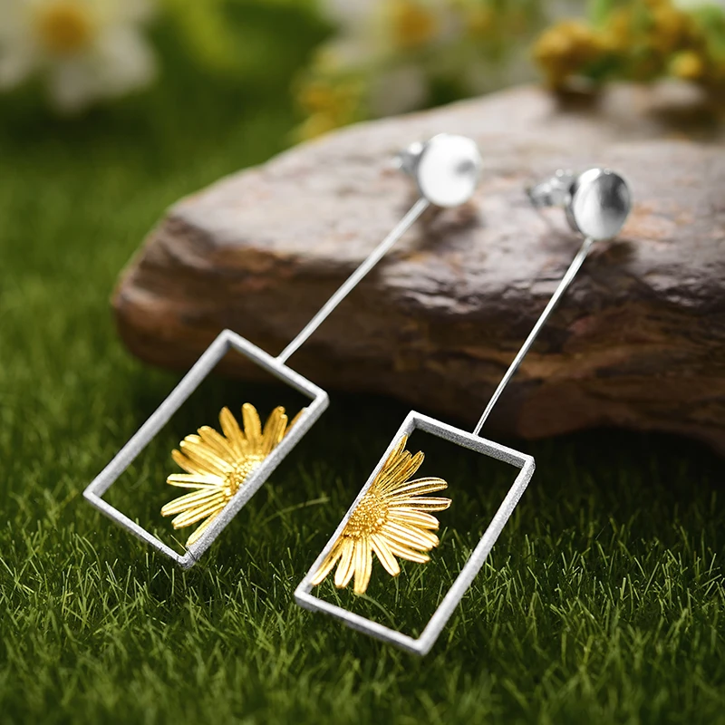 Женские прямоугольные серьги из серебра 925 пробы, ручной работы