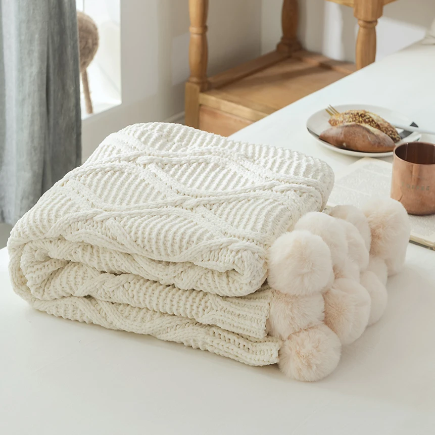 Мягкое искусственное шикарное вязаное одеяло с шариком, розовое покрывало, декоративное покрывало для кровати, клетка на диван, Манта
