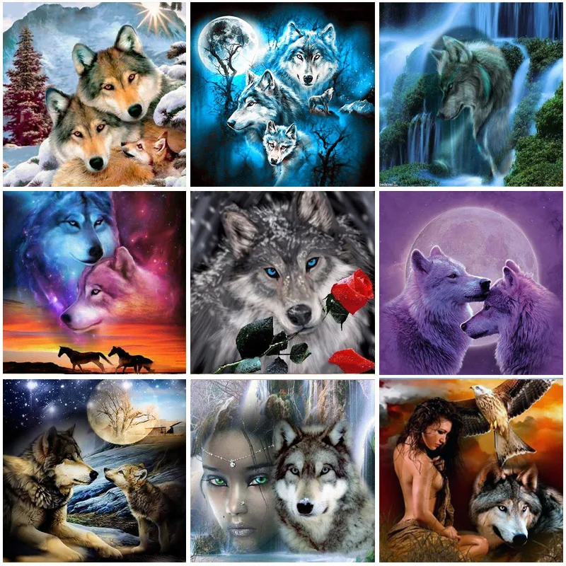 Волк DIY 5D алмазная картина полное круглое сверло, смолы, животное, диамон, вышивка крестиком, домашний декор, Прямая поставка, настенная живопись