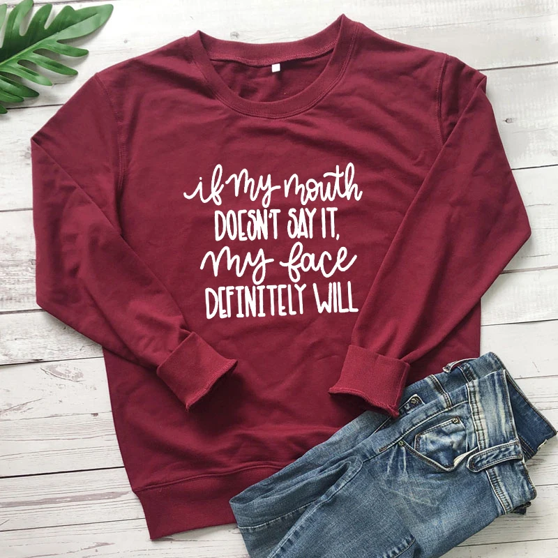 Если мой рот не говорит, Свитшот унисекс, Саркастические свитшоты с длинным рукавом, повседневный женский джемпер, пуловеры со слоганом