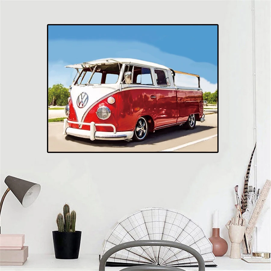 Полный Круглый дрель 5D DIY алмазная живопись "Красный VW автомобиль" приморский пляж небо 3D Вышивка крестом мозаика Стразы Декор подарок