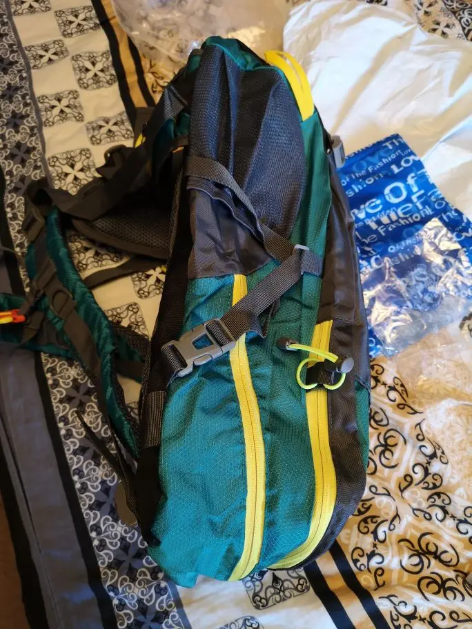 Товар пришёл точно в указанный срок. Рюкзак был упакован в два пакета. Без дефицита и брака. Все хорошо. Сам рюкзак как в описании 40 литров, много отсеков и даже есть по тайной карман. Качество на высшем уровне. Цвет яркий, замки со специальным держателем. Рюкзак для походов, но и для повседневной жизни как раз, особенно для студентов.