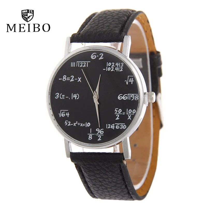 MEIBO модные математические кожаные часы, женские персонализированные часы, повседневные мужские часы, студенческие наручные часы