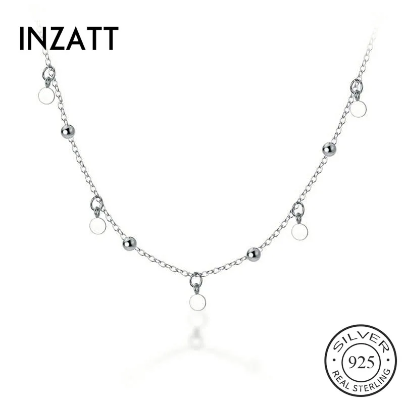 Чокер INZATT из настоящего серебра 925 пробы с круглыми бусинами для женщин, модное вечернее Ювелирное Украшение, Богемные аксессуары, подарок