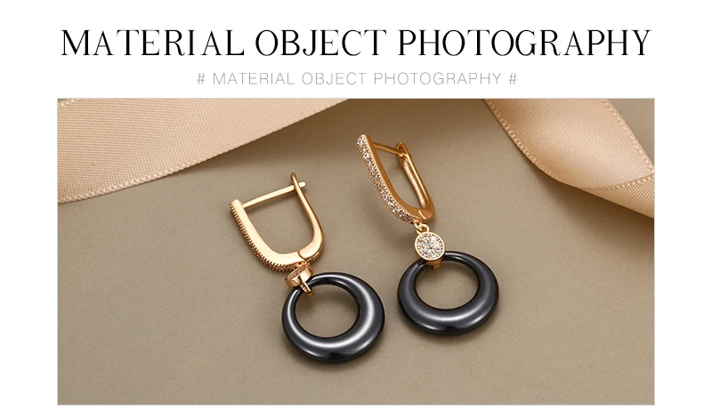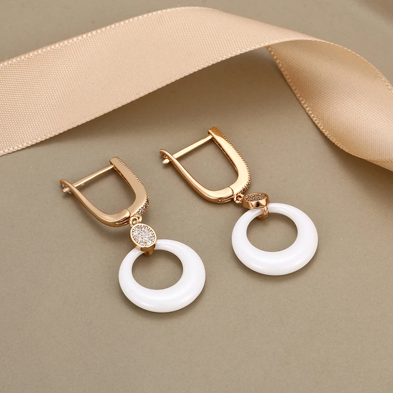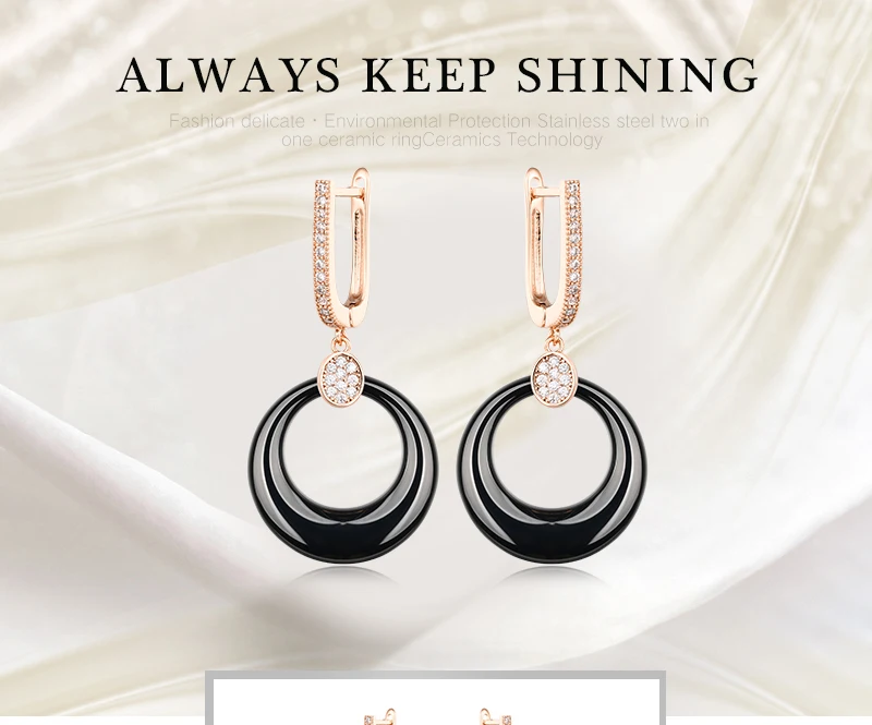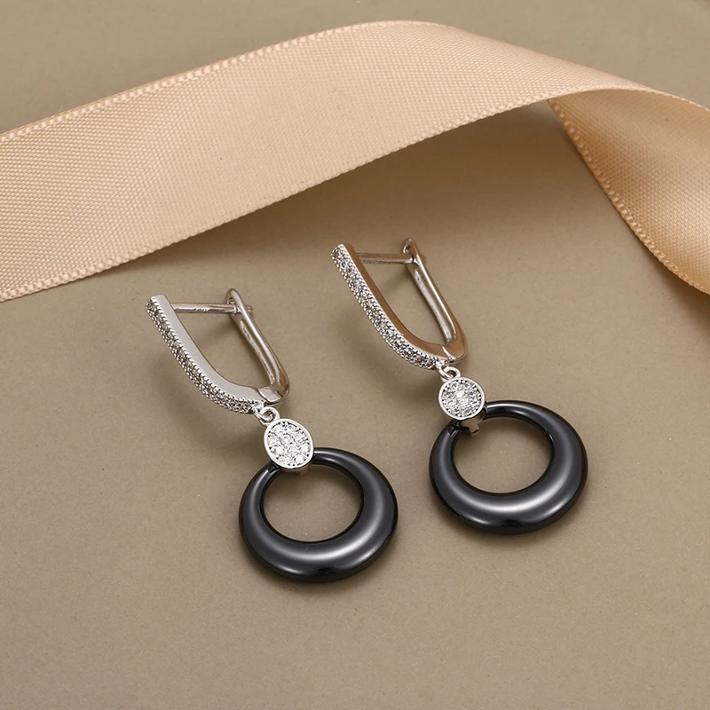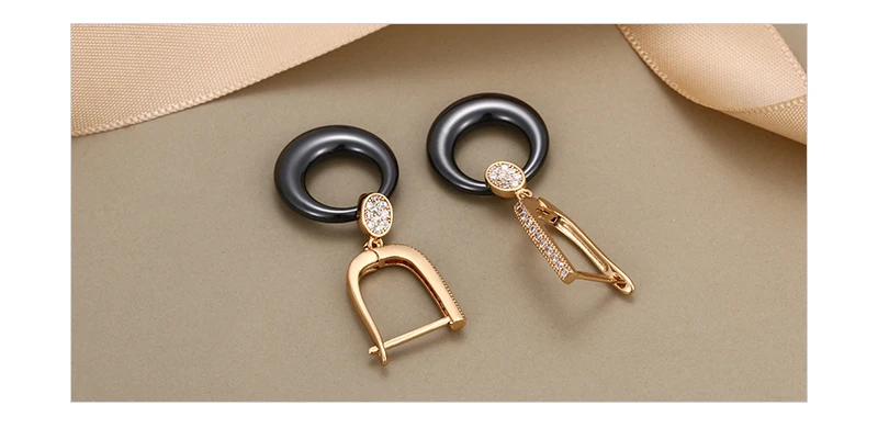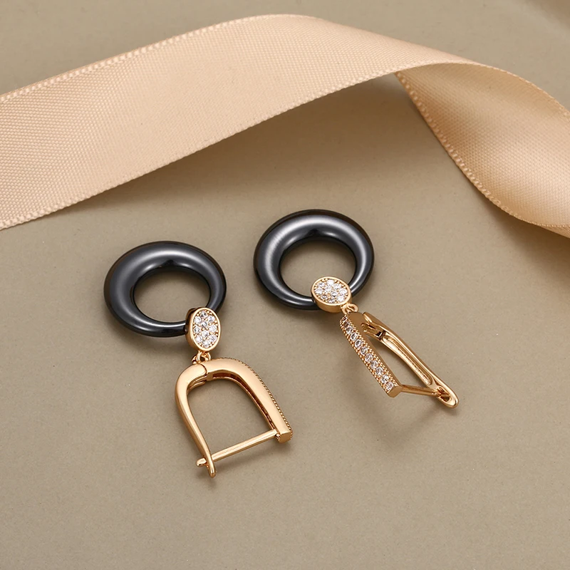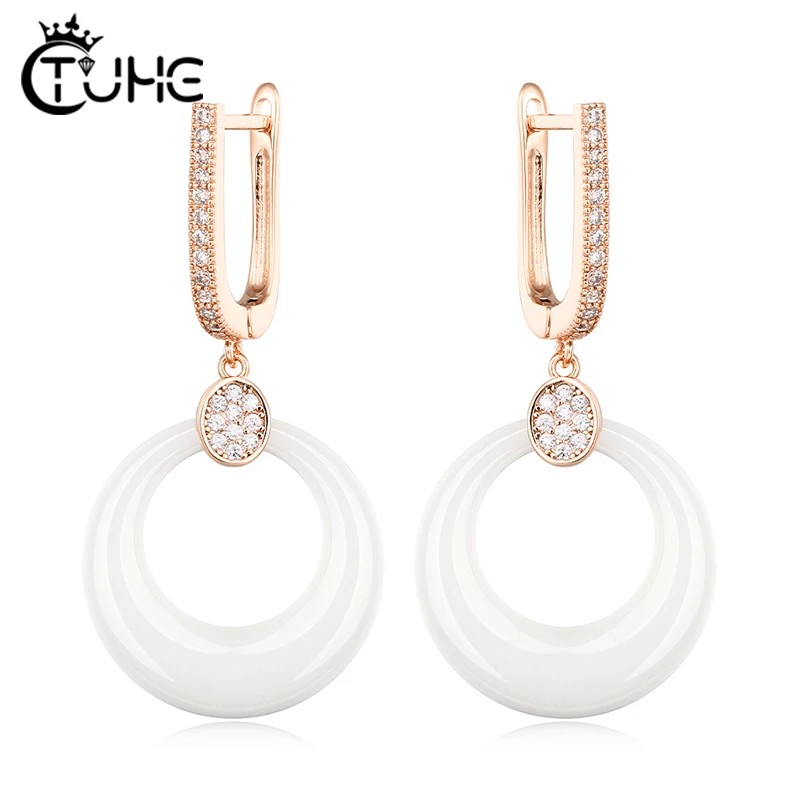Модные свадебные серьги для женщин, круглые свадебные серьги из розового золота с кристаллами, черные, белые керамические серьги для помолвки с розовымбелым золотом 585