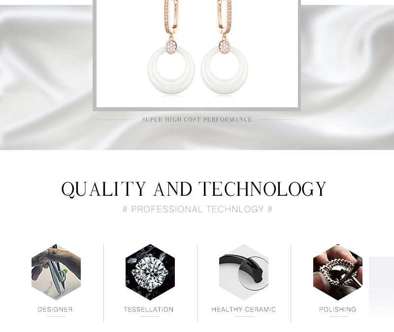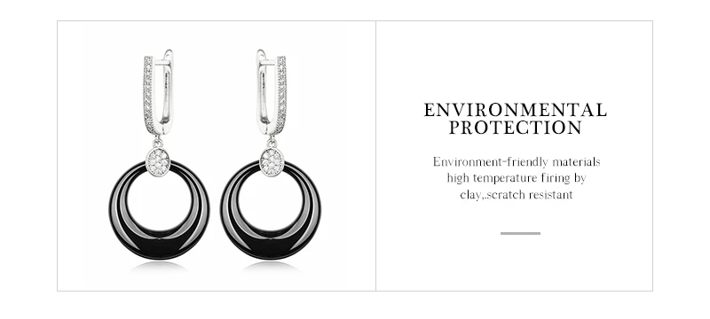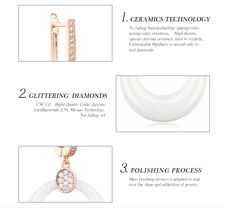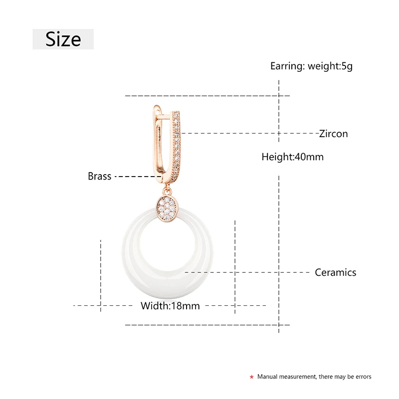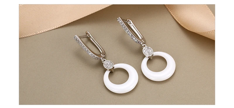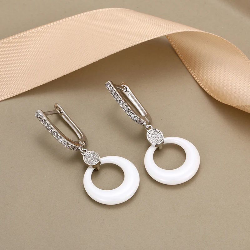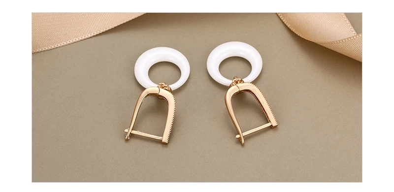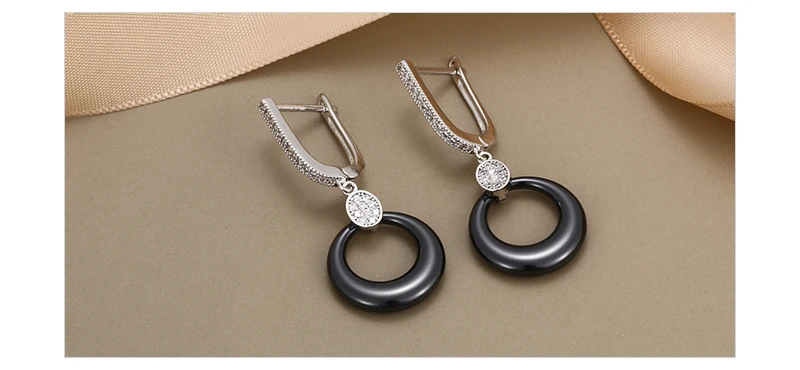Модные свадебные серьги для женщин, круглые свадебные серьги из розового золота с кристаллами, черные, белые керамические серьги для помолвки с розовымбелым золотом 585