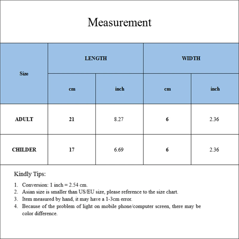 Размер: Длина взрослой модели * ширина 21*6 см Длина детской модели * ширина 17*6 см