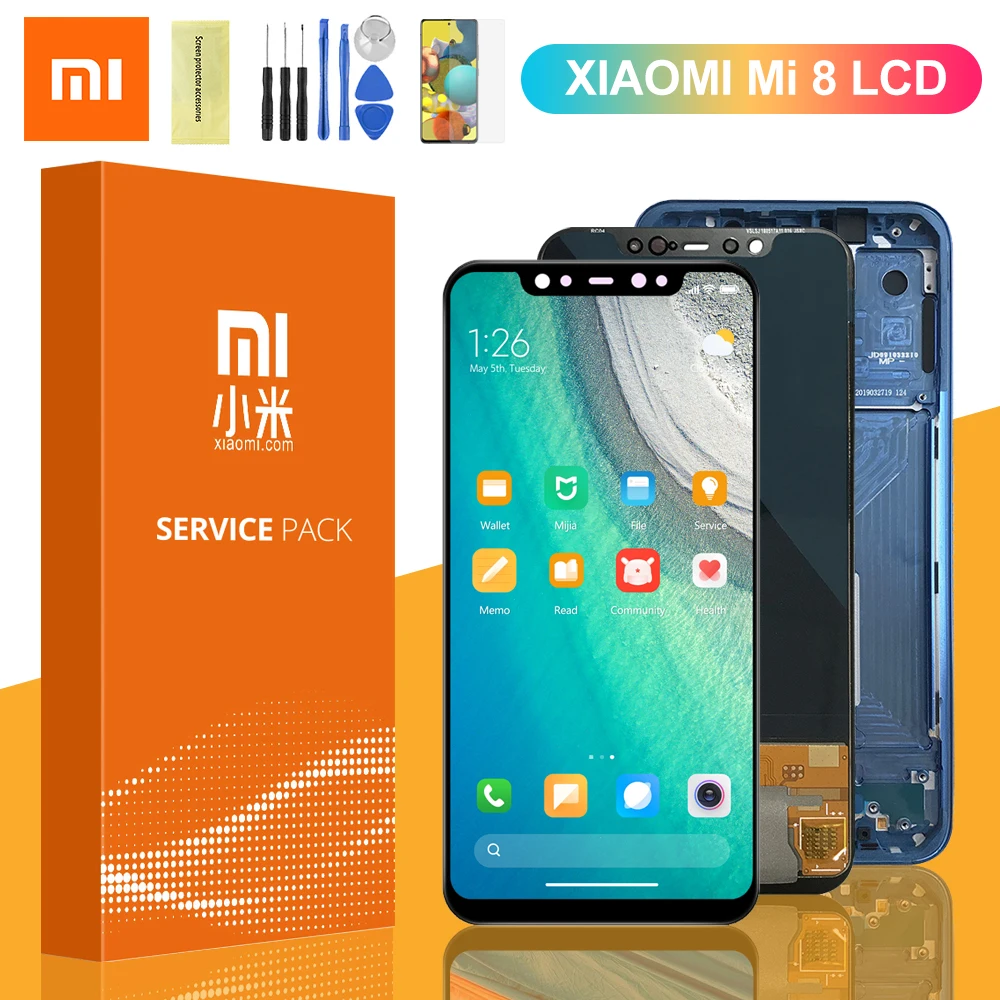 Дисплей для Xiaomi Mi 8, ЖК-дисплей с сенсорным экраном, дигитайзер в сборе с рамкой для Xiaomi Mi 8, Mi8, ЖК-экран, 100% оригинал