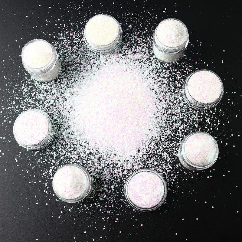 1 банка блеск для ногтей разноцветный прозрачный белый микс шестигр...