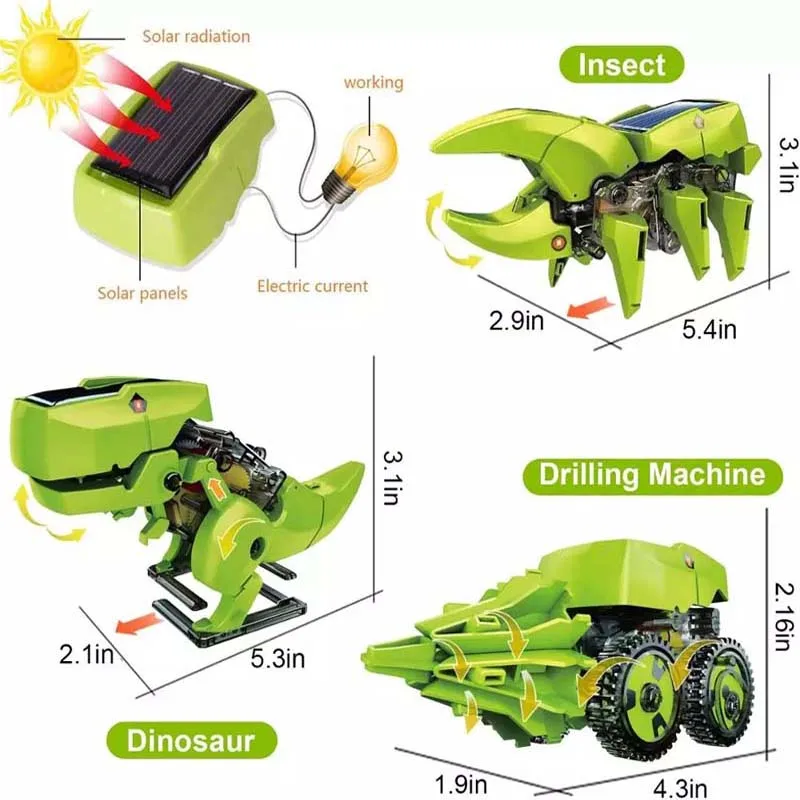 DIY 3-в-1 солнечной энергии Робот Детская игрушка динозавр насекомы...