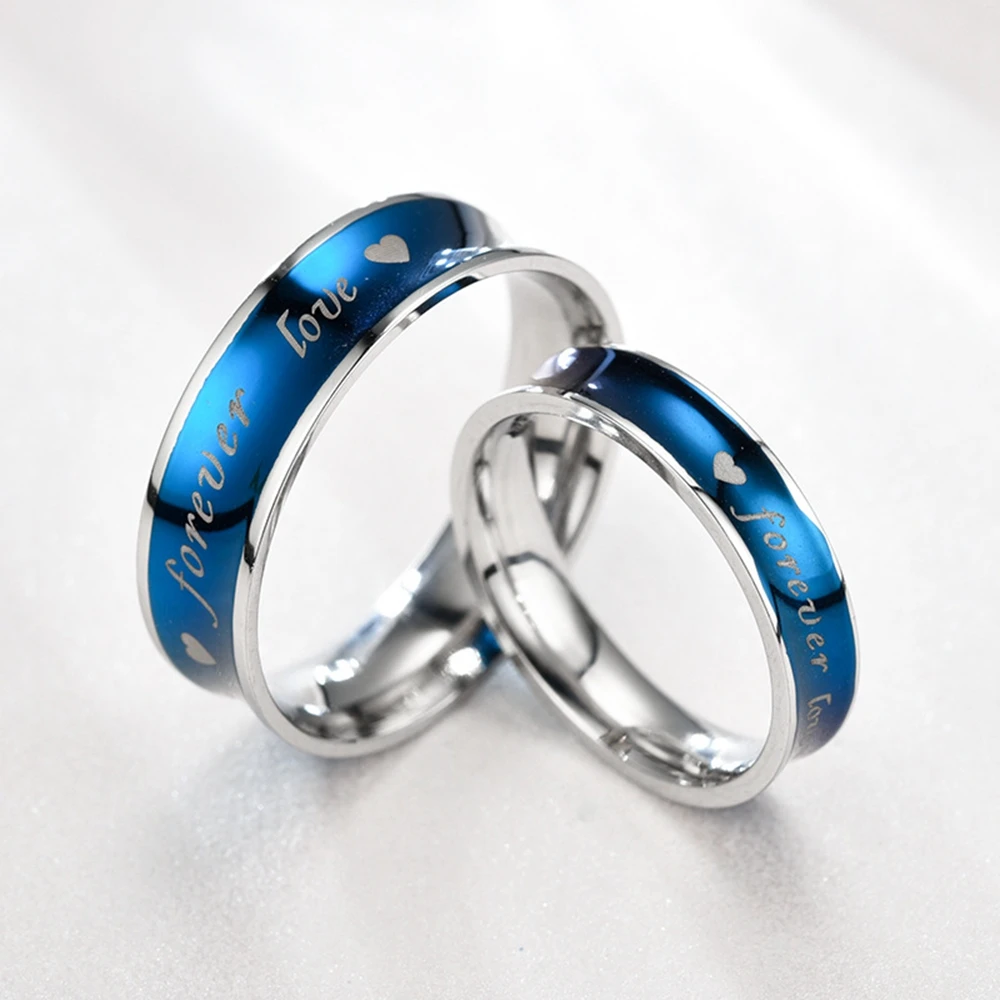 Кольца из нержавеющей стали синего цвета, набор колец для пары с надписью Forever love Crown, обручальные кольца для него и нее