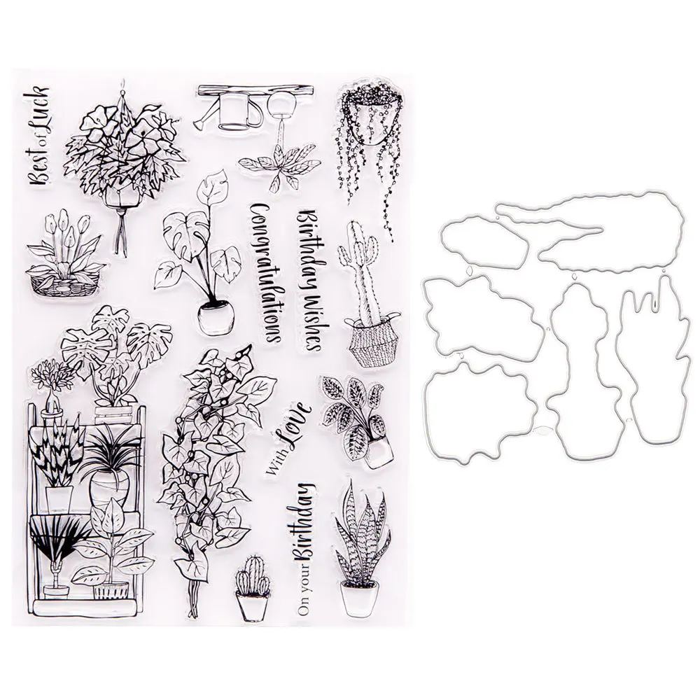 Прозрачные силиконовые штампы ZFPARTY в горшке с растениями, набор для вырезания сделай сам, украшение для скрапбукингафотоальбома