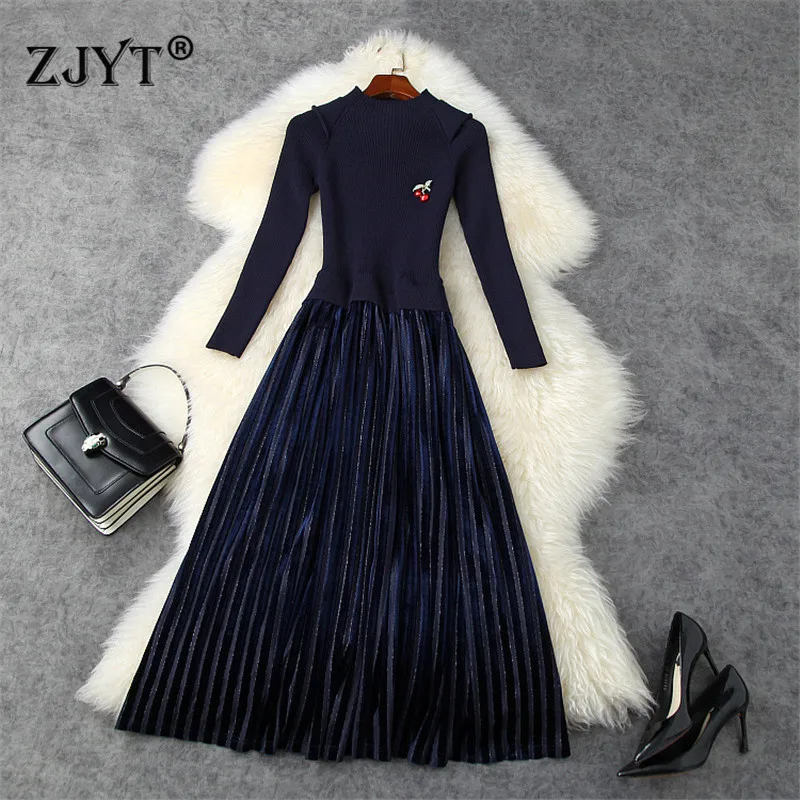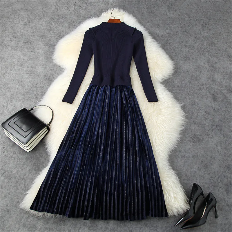 Женское Плиссированное бархатное платье, винтажное трикотажное платье до середины икры в стиле пэчворк, Осень-зима 2020