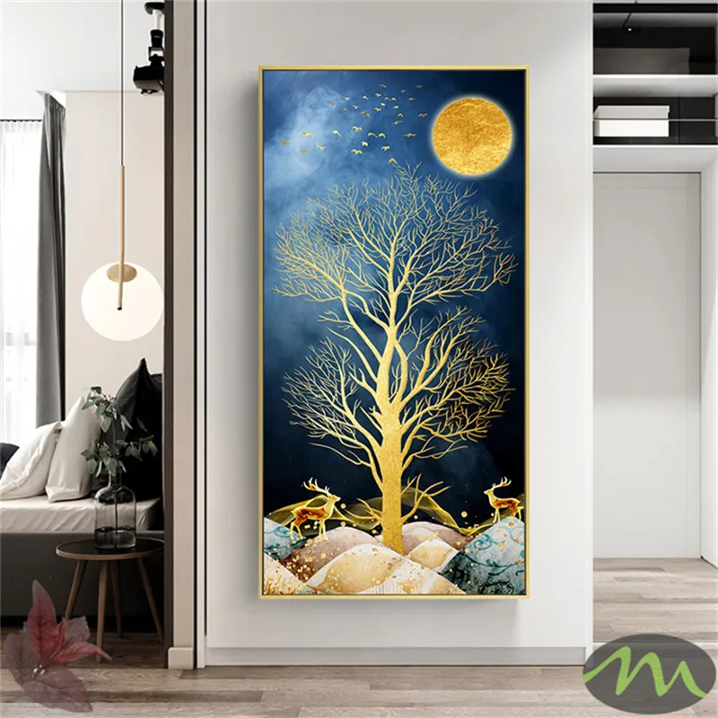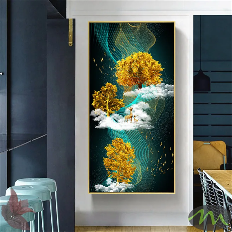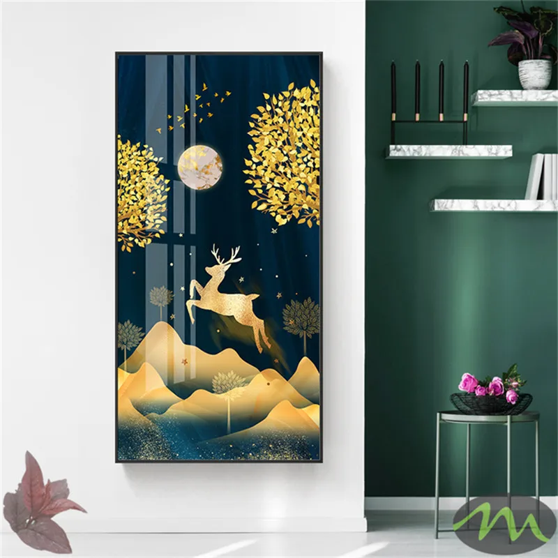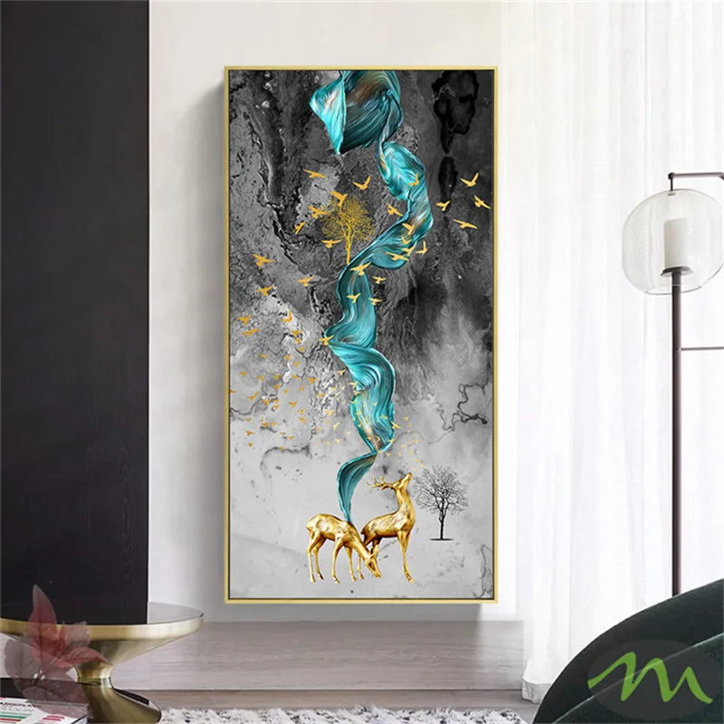 Золотой скандинавский абстрактный плакат с животными, скандинавский принт на холсте, настенное искусство картина современного искусства для гостиной, декор для входа 6-5