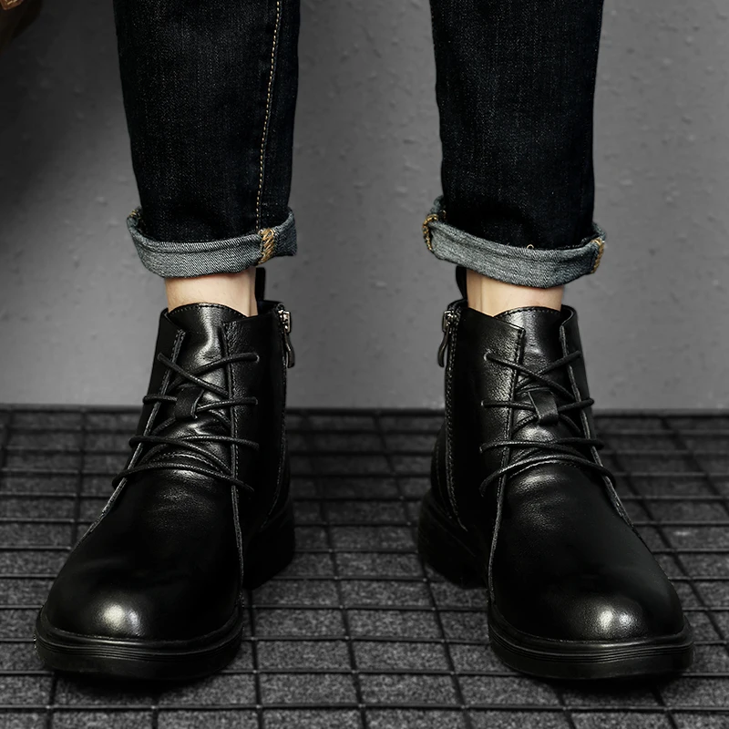 Ботинки мужские из натуральной кожи, роскошные повседневные теплые ...