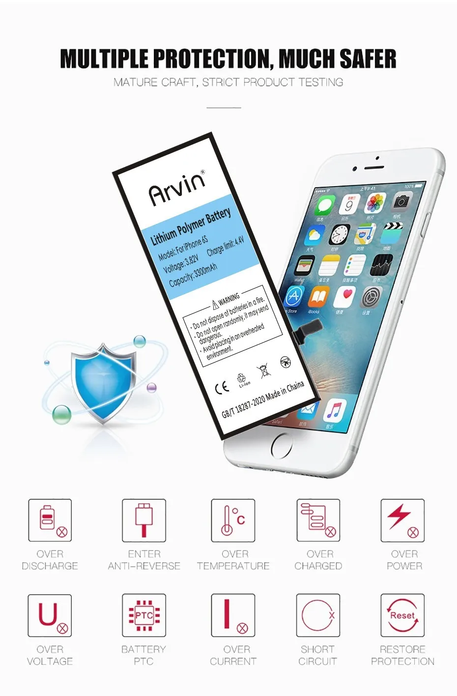 Описание продукта: 1. Ёмкость: Аккумулятор 3200 мАч для iPhone 5/5S Аккумулятор 3250mAh для iPhone 5SE Аккумулятор 3300 мАч для iPhone 6/6S 3600 мАч для iPhone 6Plus/6splus батареи Аккумулятор для iPhone 7/8 4000 мАч 4250mAh для iPhone 7P/8P/X/XS батареи Аккумулятор 4300mAh для iPhone XR Аккумулятор 4500 мАч для iPhone Xs Max 2. Тип: литий-полимерный аккумулятор. 3. Напряжение: 3,82 в 4. Размер: оригинальный размер 5. Совместимость с iPhone 5 5S 5SE 6 6S 7P 8Plus X XS XR XSMAX 6. Тип батареи: высокая емкость/литий-ионный (литий-ионный) полимерный аккумулятор с премиум-ячейкой. Покупатели оплачивают заказы, мы отправим их быстро в течение 2-3 дней и проверим качество через профессиональное оборудование. Если у вас есть какие-либо вопросы, пожалуйста, свяжитесь с нами. Мы предлагаем 1 год гарантии, пожалуйста, будьте уверены в покупке и не беспокойтесь о проблемах с послепродажным обслуживанием.