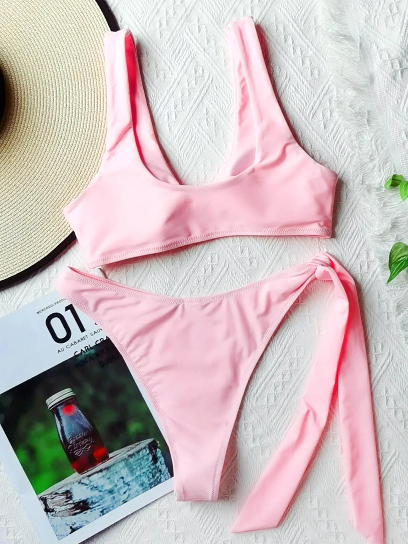 Бандажные бикини 2022, сексуальный женский купальник, однотонный ку...