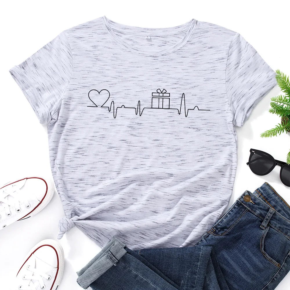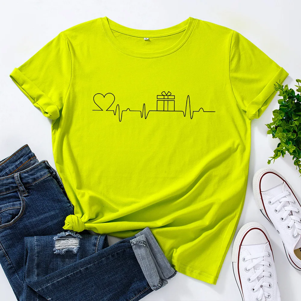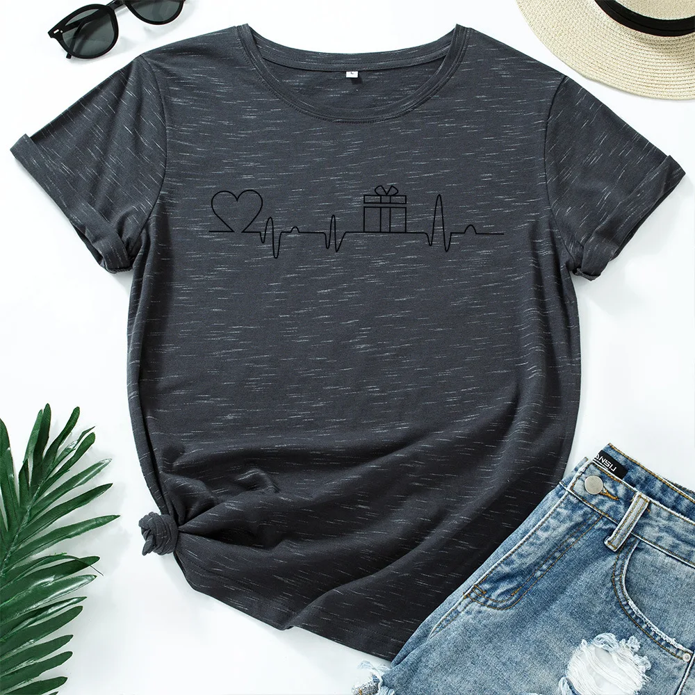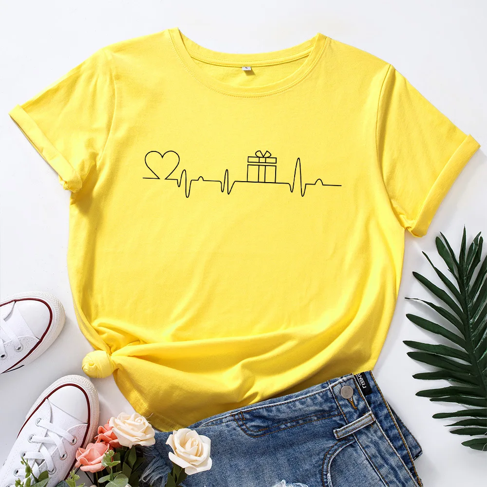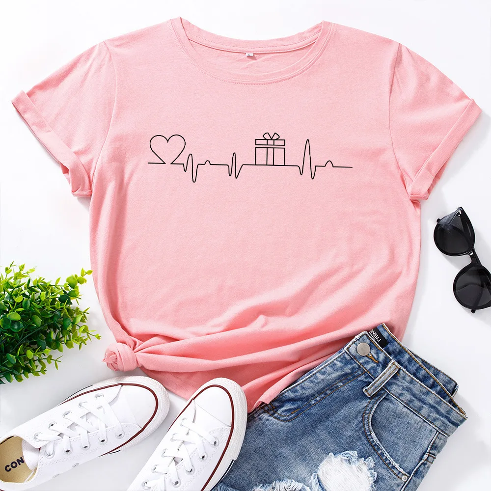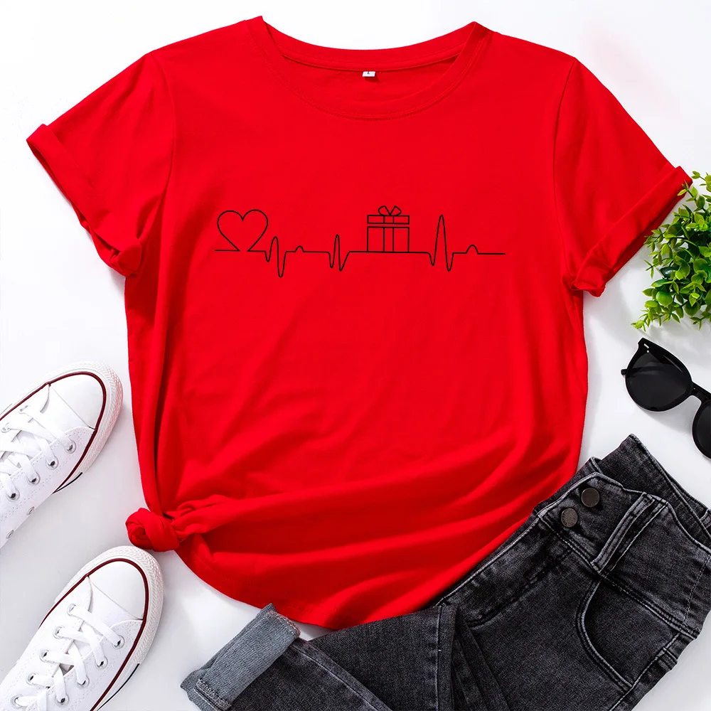 Женская футболка с рисунком ЭКГ и сердец, модная футболка с графическим рисунком, женская уличная одежда, женские хлопковые футболки большого размера, повседневные топы
