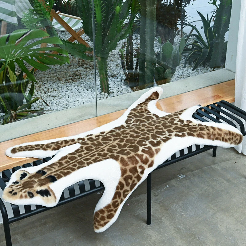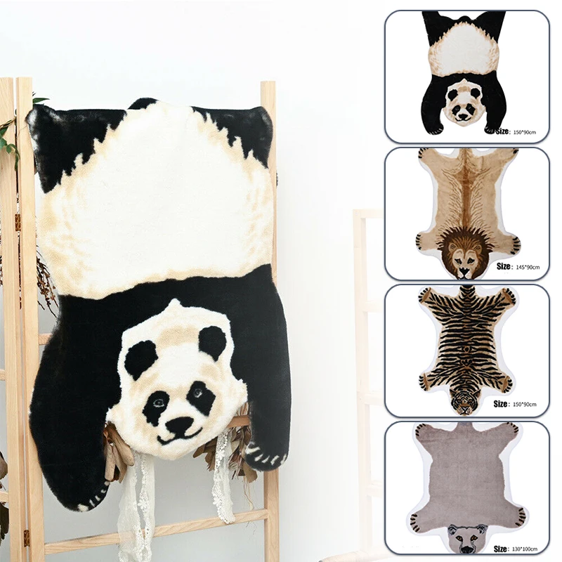 Ковер в скандинавском стиле с принтом животных, панда, леопард, тигр, жираф, форма льва, искусственный плюшевый нескользящий ковер коврик в виде шкуры