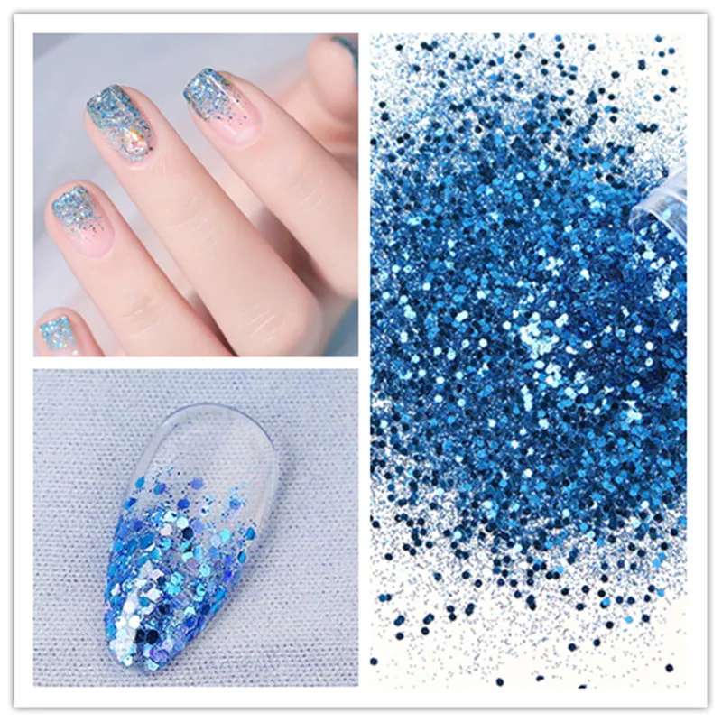 Пудра для ногтей небесно-голубого цвета, 10 мл, серия очаровательных шестигранных кусочков блестящая голографическая, нестандартная пудра, блестки, украшения для ногтей