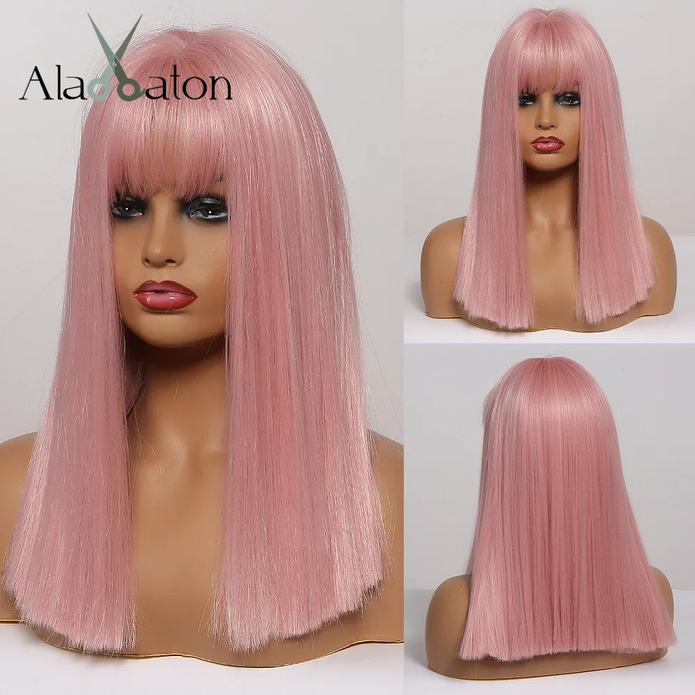 Парик для женщин, длинные прямые волосы ALAN EATON, термостойкий, с эффектом деграде, черный, коричневый, серый, пепельный, Лолита, Боб, с челкой, для косплея