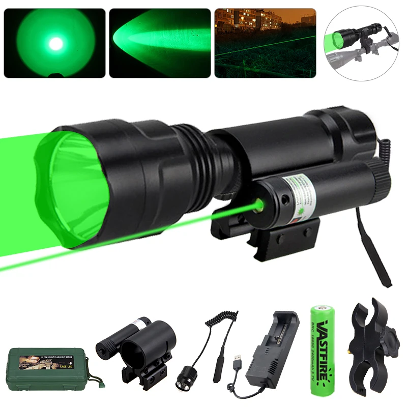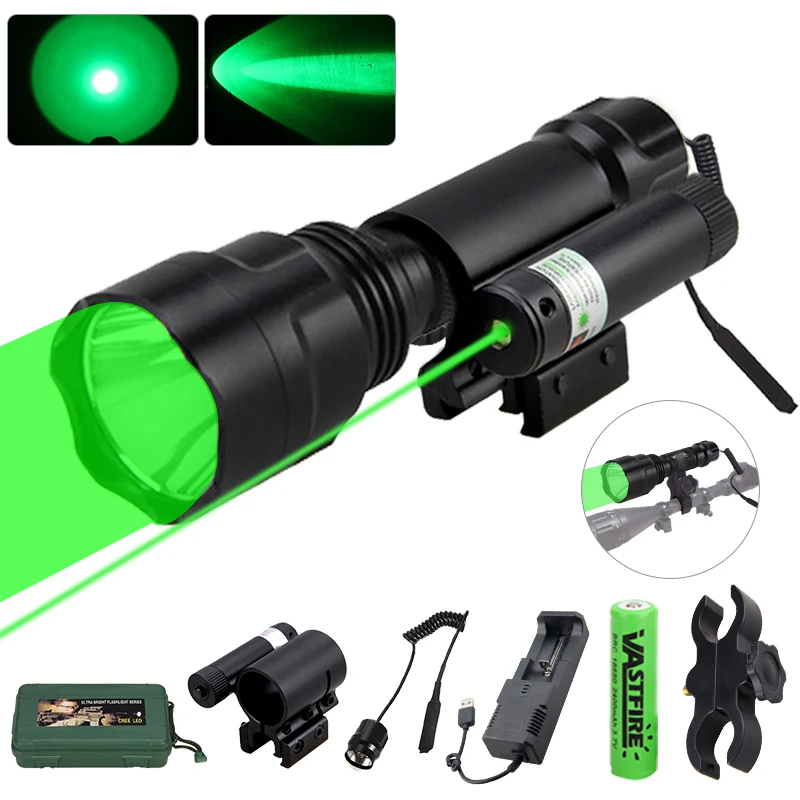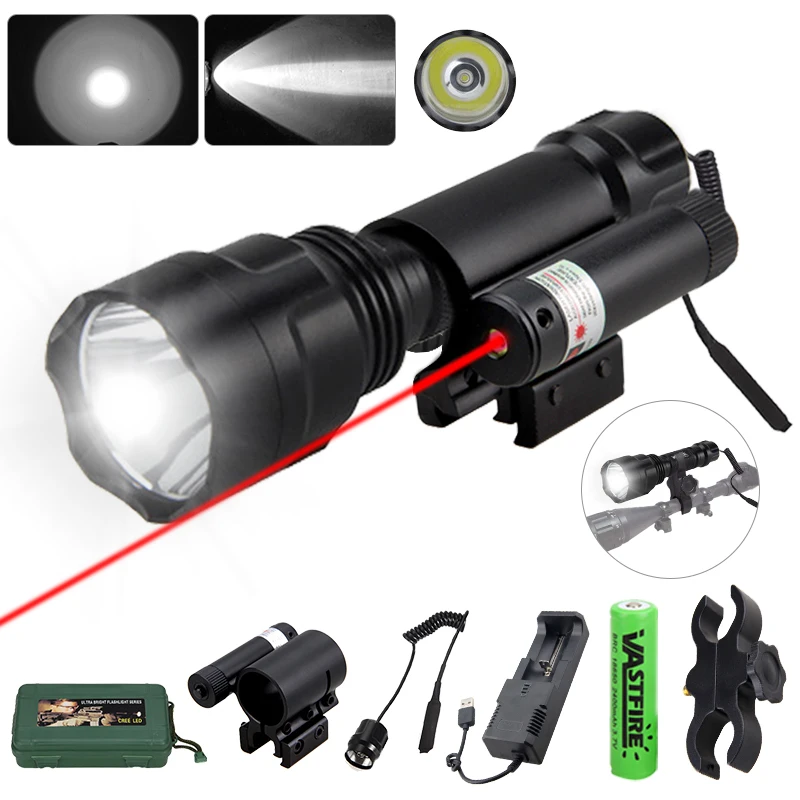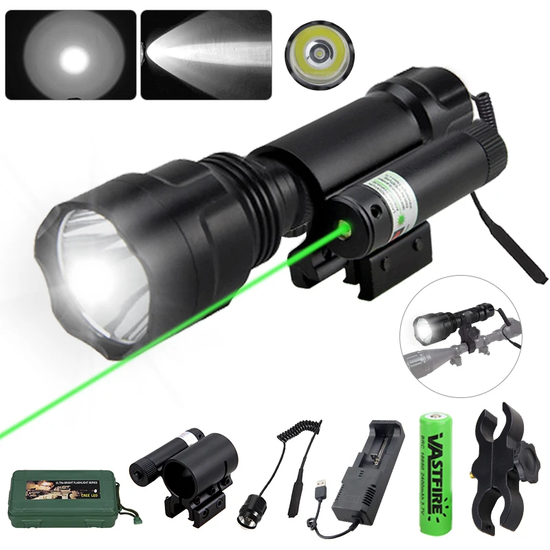 Прицел для винтовки красныйзеленый лазерный точечный + C8 200 ярдов охотничья вспышка свет для ружья + переключатель + рельсовое крепление + 18650 + зарядное устройство + коробка