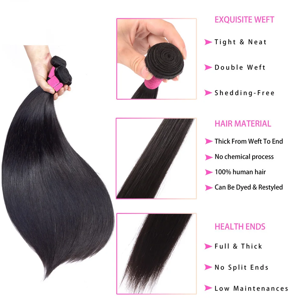 Прямые пряди волос MEGALOOK 30 32 34 дюйма, бразильские волосы без ...