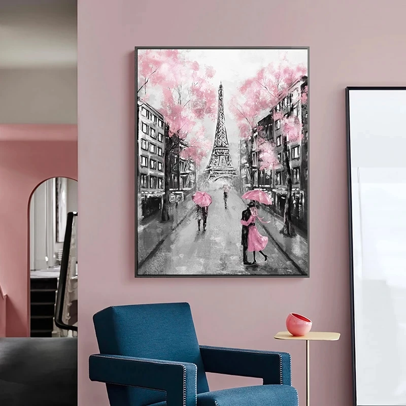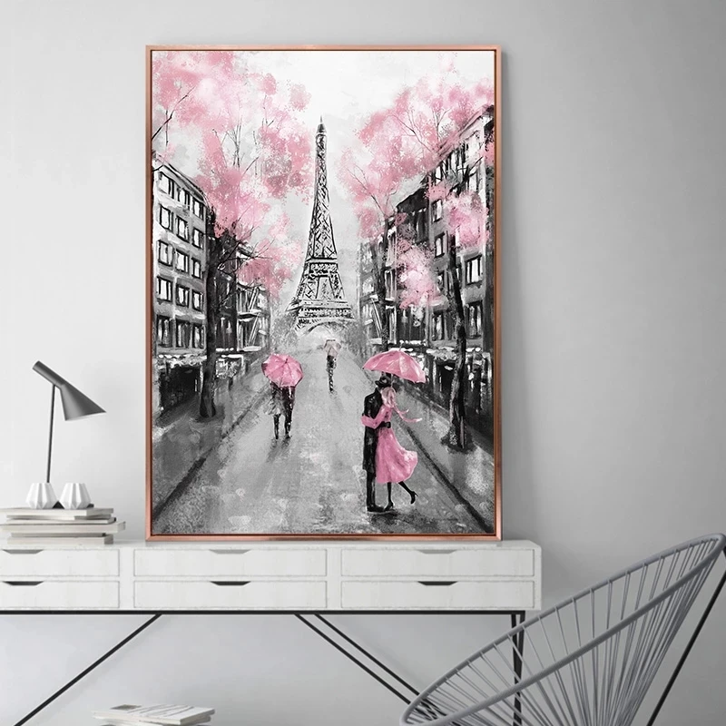 Настенная картина с изображением пар, Эйфелевой башни и пейзажа