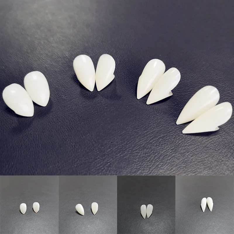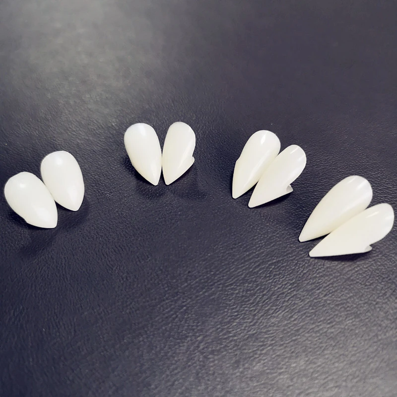 клыки вроде норм, единственное я тупанула и забыла у ним клей купить, без клея не преклеить на зубки(