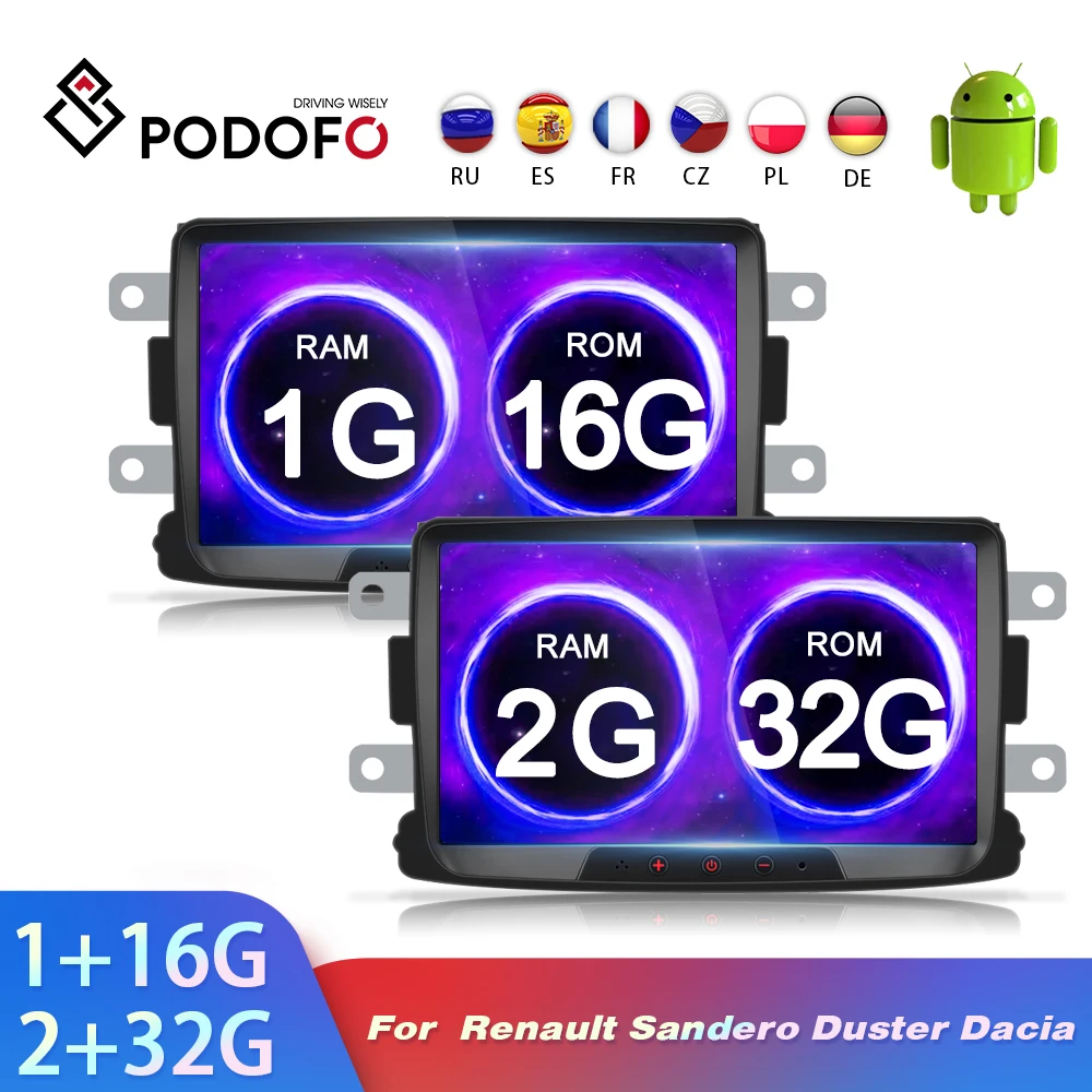 Автомобильный мультимедийный плеер Podofo, магнитола на Android, 2 Гб ОЗУ, 32 Гб ПЗУ, с GPS Навигатором, с зеркальным соединением, 8 дюймов, для Renault SanderoDusterLoganDokker