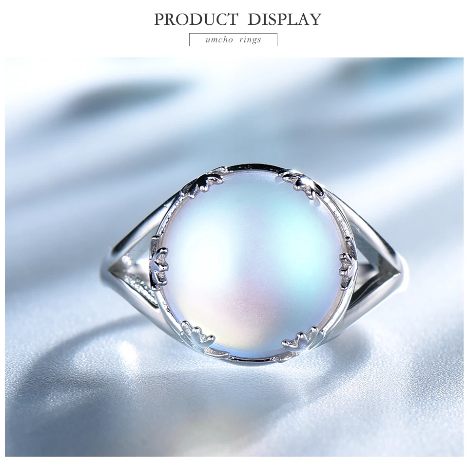 UMCHO, цельная Серебряная подушка из морганита, кольца для женщин, ...
