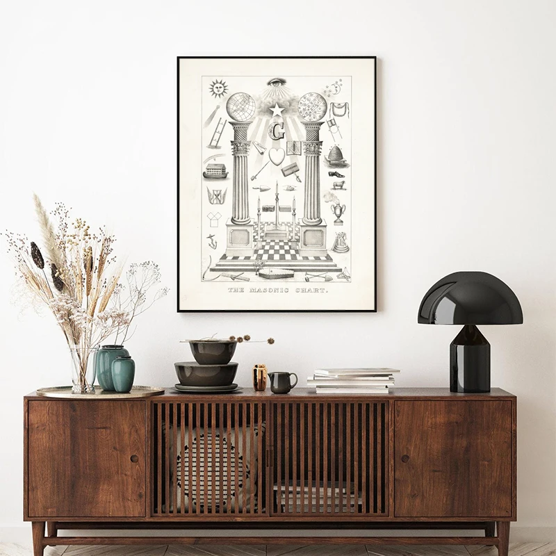 PurposeHand Drawing Freemason Chart Art Painting Home Decor