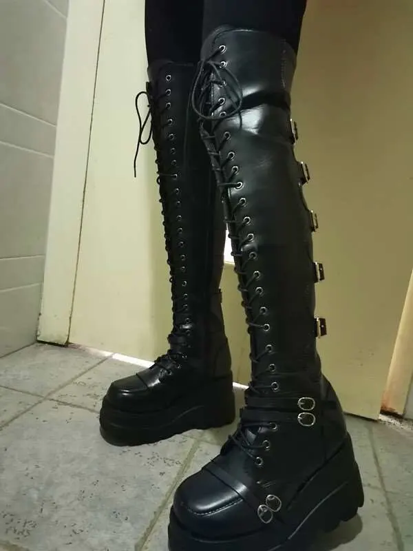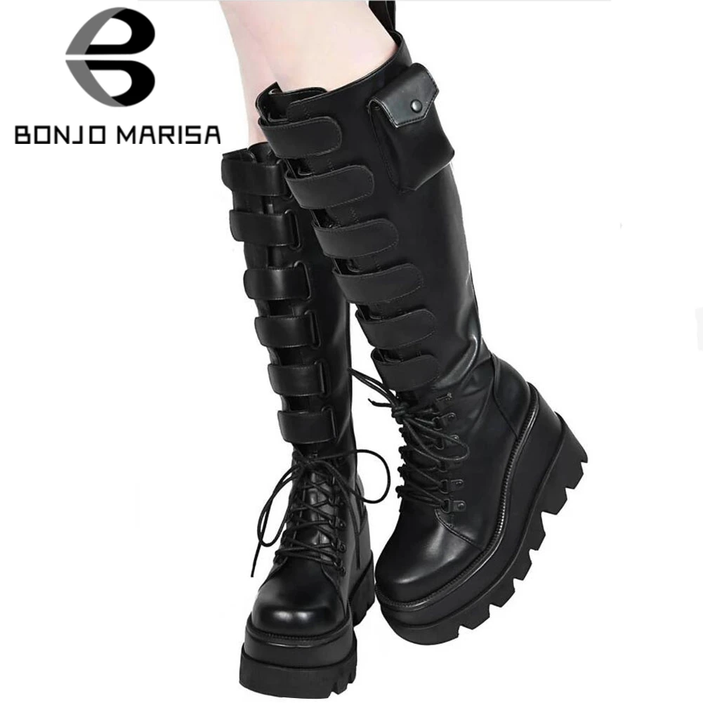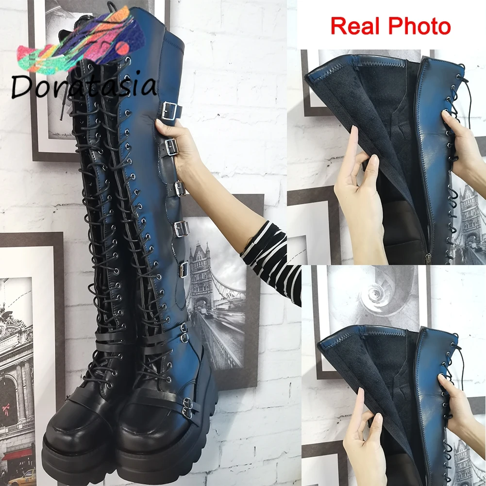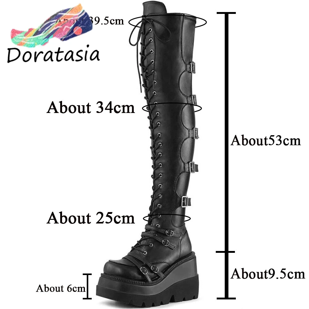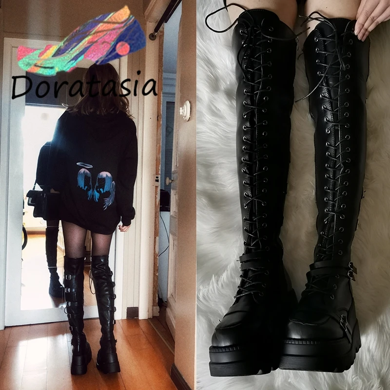 Сапоги женские DORATASIA, до бедра, на платформе, с пряжкой, на толстой подошве