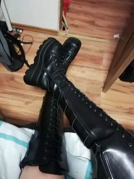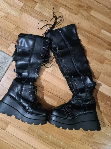 Сапоги точно как в описании продавца. Размерная сетка соответствует действительности. Брала чуть больше, под тёплый носок. Клей нигде не торчит, пошив хороший, запах новой обуви. Колодка очень удобная, высоты платформы не ощущается. Большое спасибо продавцу !