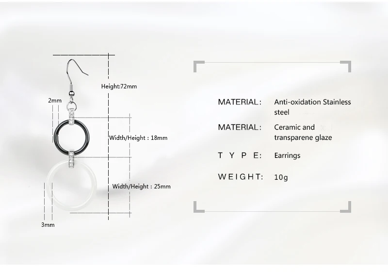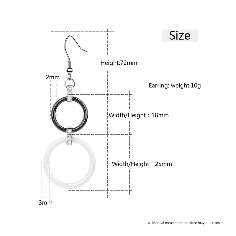Набор украшений из керамического кольца и серег, 2 мм, черный и бел...