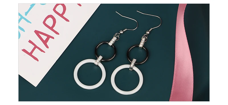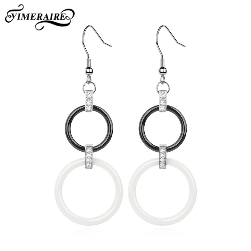 Модные черно-белые керамические серьги с двойным кругом, модные женские элегантные аксессуары, ювелирные изделия для женщин, свадебные помолвки